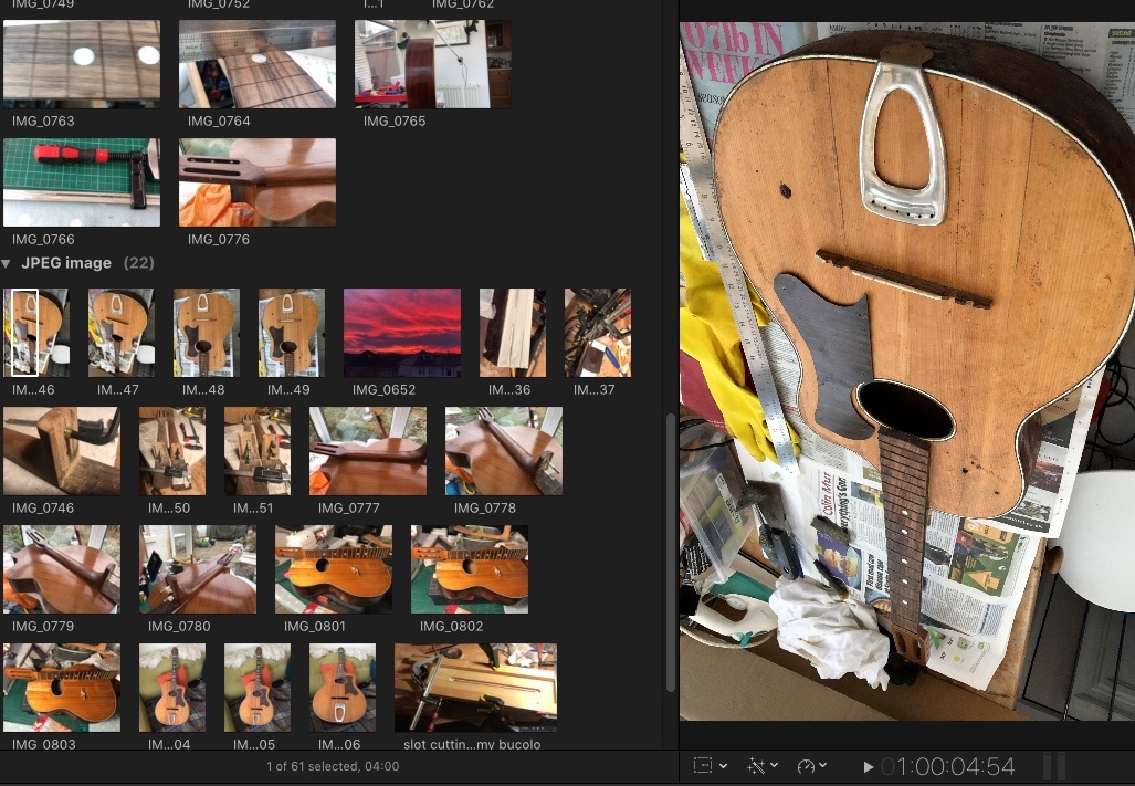 I need to do find more time to work on the Bucolo restoration video, & I'd like to feature the guitar in the soundtrack too, here's a wee picture of the edit-in-progress. Coming 'soon' to a screen near you...