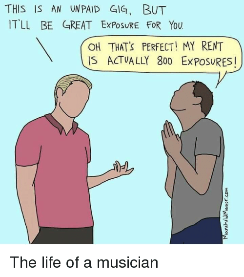 As @BluesBop Harry said above. And I added: playing music, professionally or otherwise, is one of the very few endeavors where you're not being paid while you're learning or getting better at your skills. Thus, when going out to play a two hour gig, what's hidden from the eyes of the audience and the person hiring you is countless hours of work that brought you there. Audience may take it for granted and that's fine. Establishment taking it for granted is not. We just got offered a $25 per person plus dinner and tips to play a two hour set at the French restaurant on July 14th, the Bastille day. I don't see that being a slow night. One problem is that the establishments feel it's OK to pay a musician $12.50/hour plus tips and Bouillabaisse. But even more of a problem is when we said that it's not enough, the owner simply said "it's OK, there's a guy that plays a guitar that we usually get, he'll do it".
