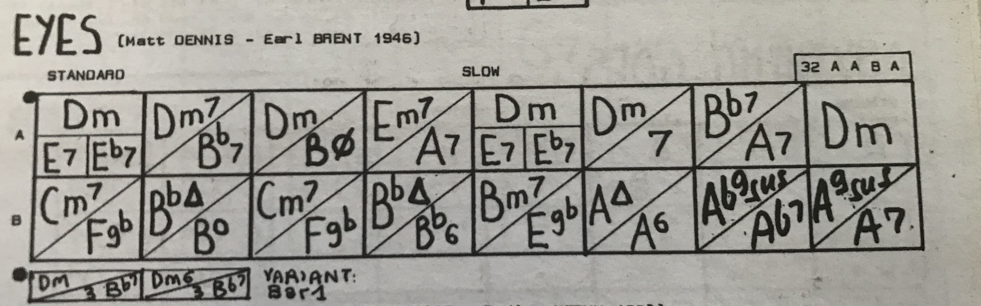 I transposed it to the guitar-friendly key of Am and so far the Jazz Police haven’t caught on...