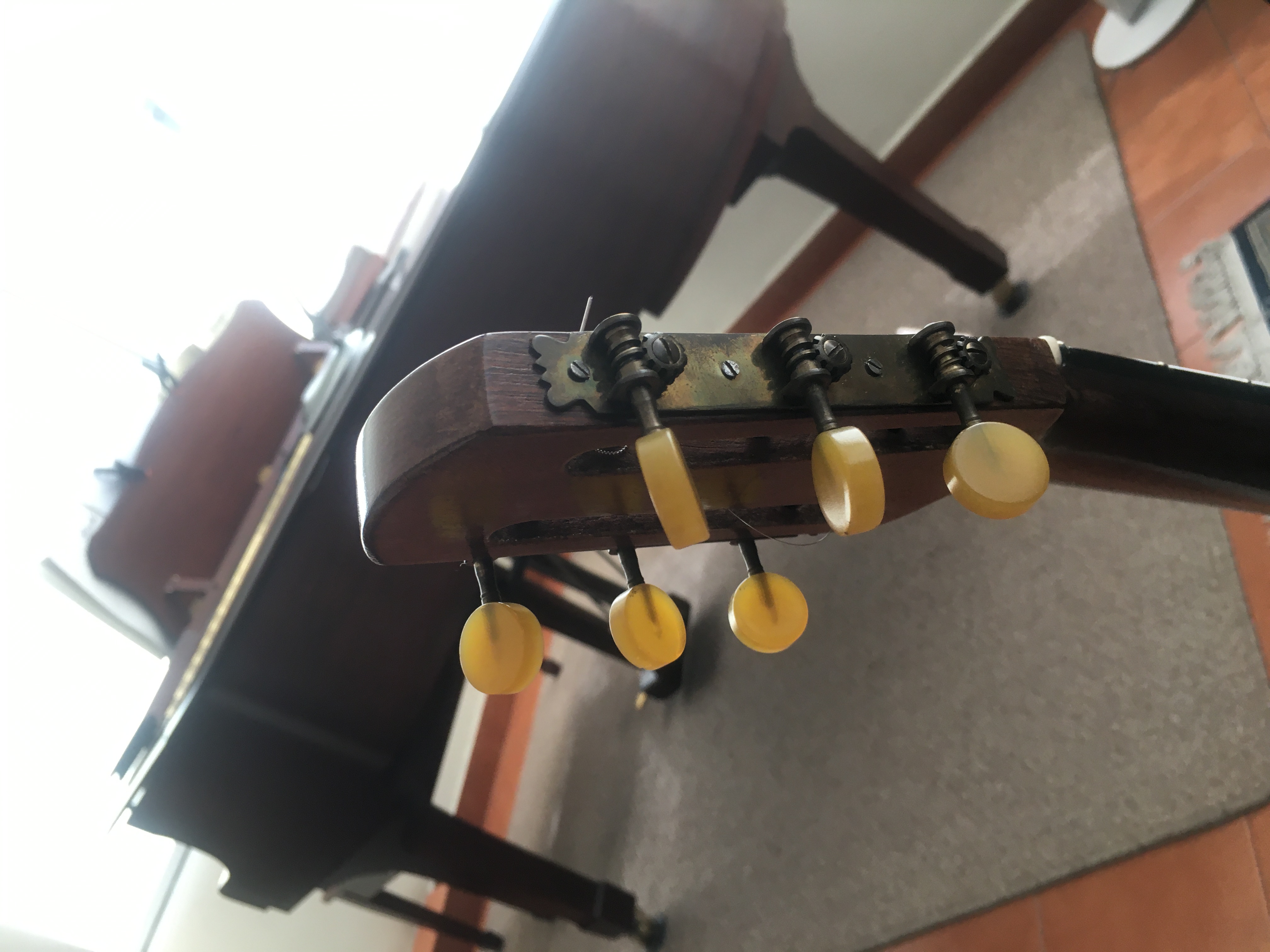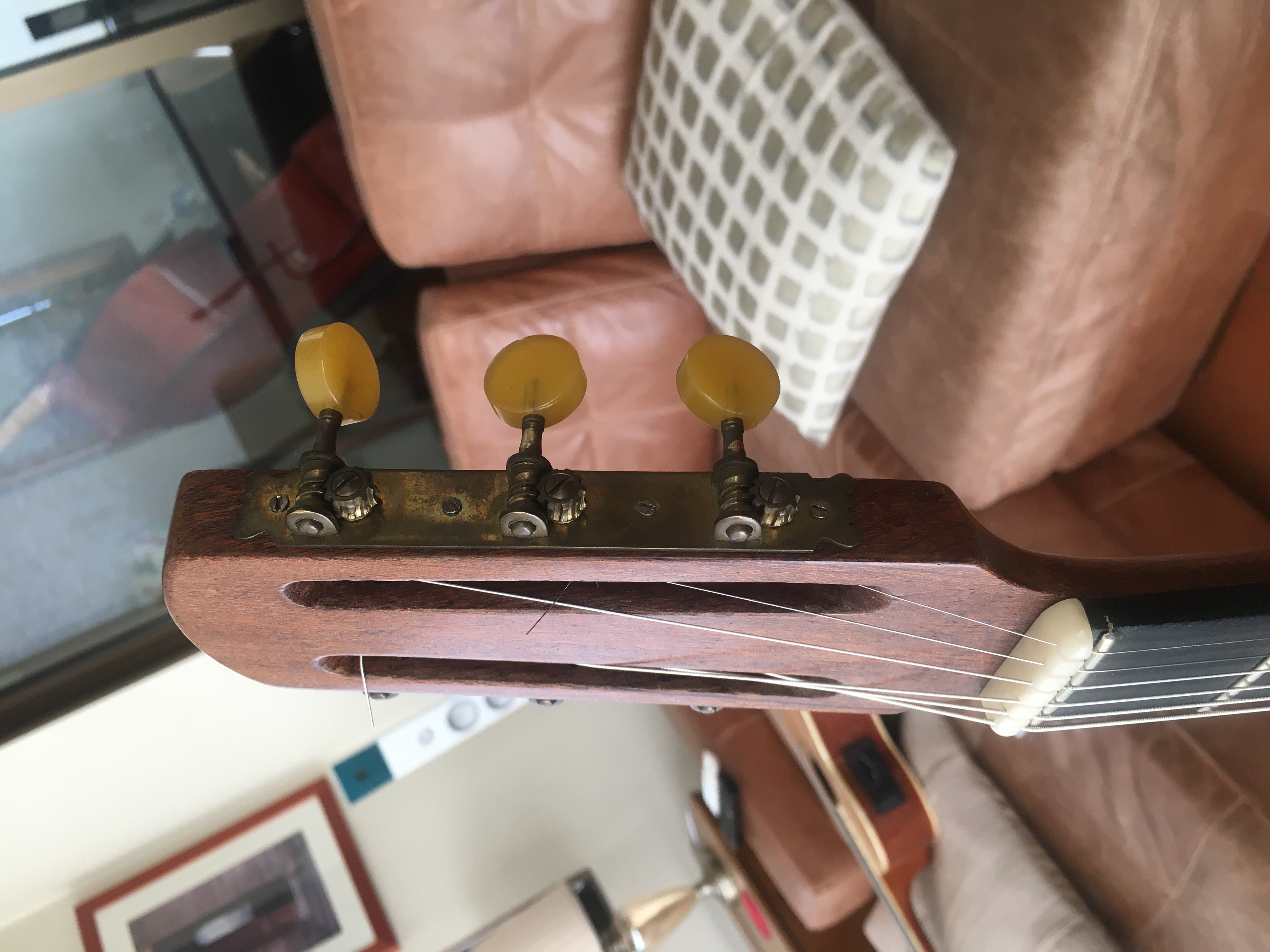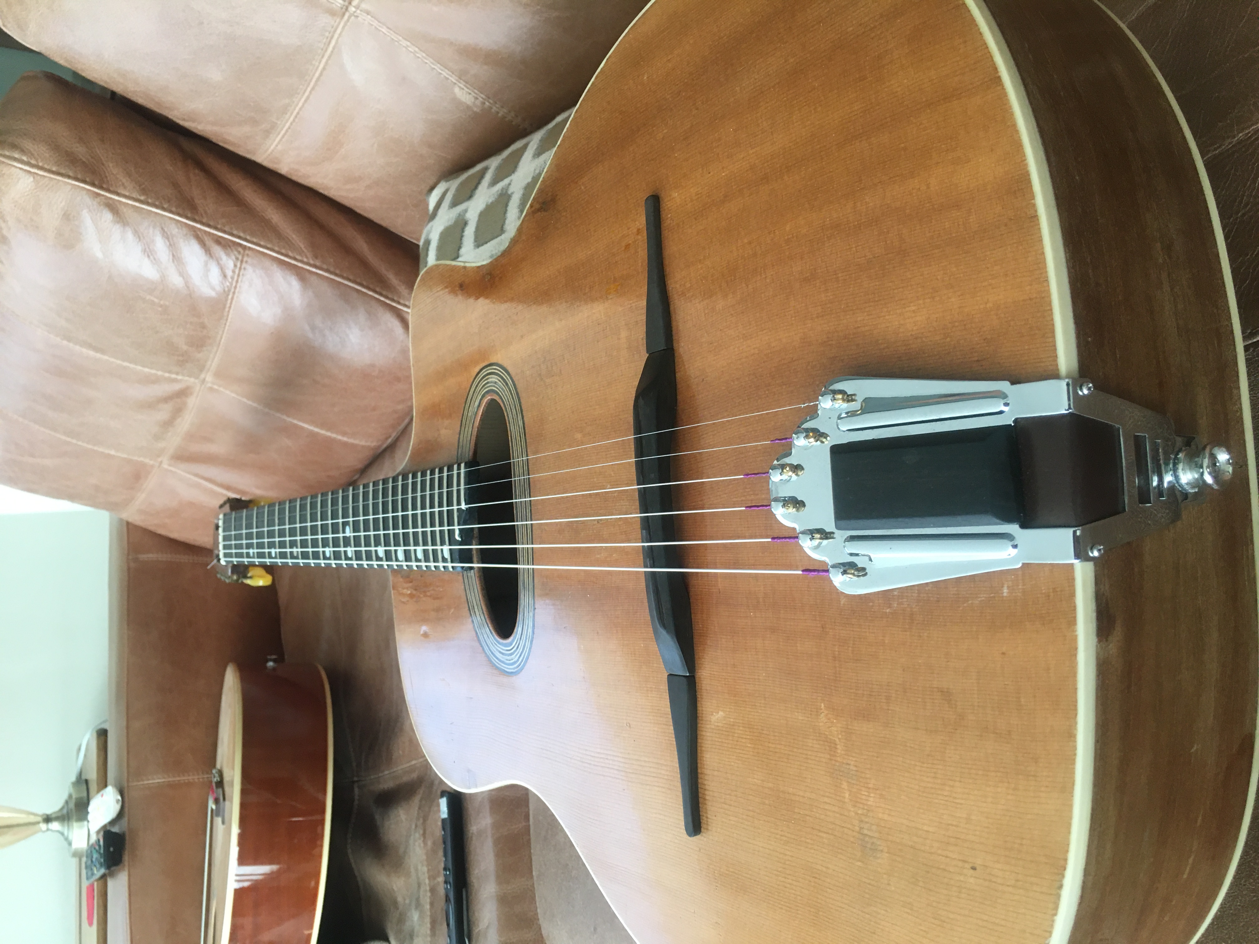 I was in debt to tell you how it went the restoration of this guitar. Finally I changed the fretboard, put in a truss rod, made a new bone nut (instead of the plastic one), maintained the yellow candy tuners (they work great), made a new ebony bridge, changed the tailpiece and put savarez argentine strings on. And it sounds BIG, I am shocked as how loud this guitar can be.