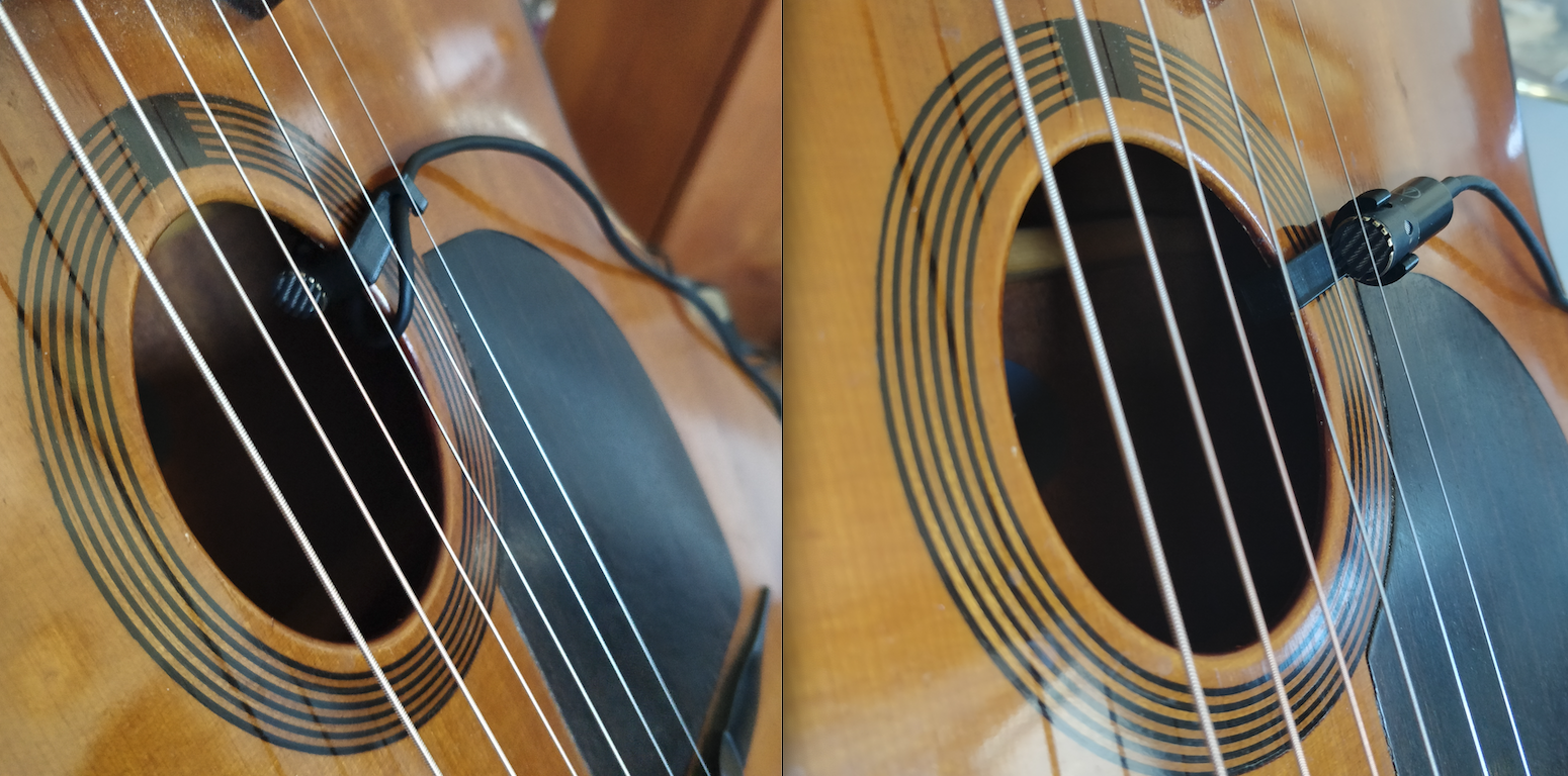 I've also experimented with suction-cupping a DPA-style gooseneck mount for these. Honestly, it's not very practical. I found I was getting more feedback than just going with the bridge or soundhole clip. But it depends on the guitar.