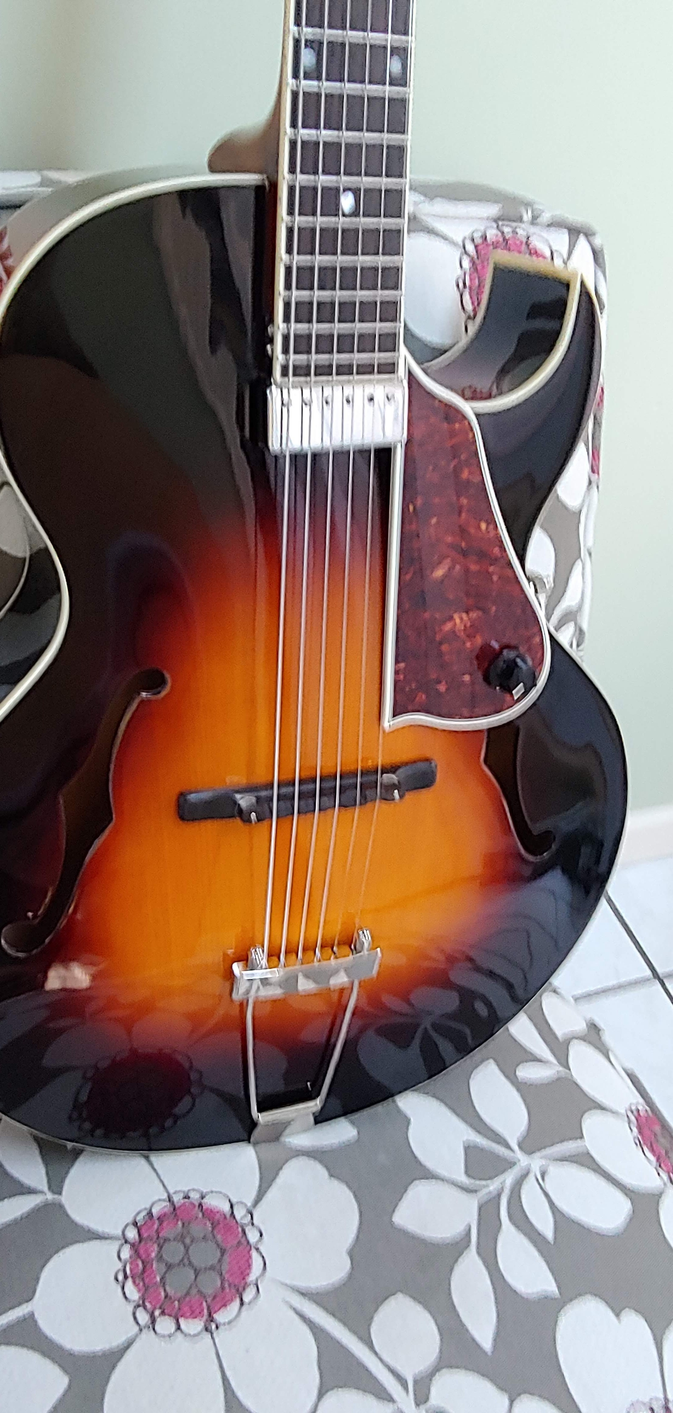 Hello I have a stunning Loar LH 350 Archtop that I don't really play. I bought it a while back thinking that I would try to get into some straight-ahead Styles but didn't. What would be most helpful for me is to have a spare mid-range gypsy guitar like an Altamira or gitane (but not a D500 or a Cigano) if anyone is willing to trade. I currently have a set of Martin retro morel strings (12's) which are more acoustic but work fine through the pickup as well. You may want to use a different gauge or type of string based on your preferences. The guitar is in good condition with low action at about 2.5 mm. There is decent string balance through the Kent Armstrong pickup. PM if interested. Thanks.