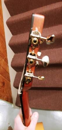 Hi best to email any questions to me at deanoguitar at gmail, sometimes PMs here are delayed. New strings installed. Tuners were upgraded to very nice sta-tite grover tuners. the bridge on this guitar is excellent , in most cases you need to replace the bridge on lower-priced Gypsy guitars but this one is well made and produces good volume . Standard 670mm scale. Very good condition, just a few nicks here and there.