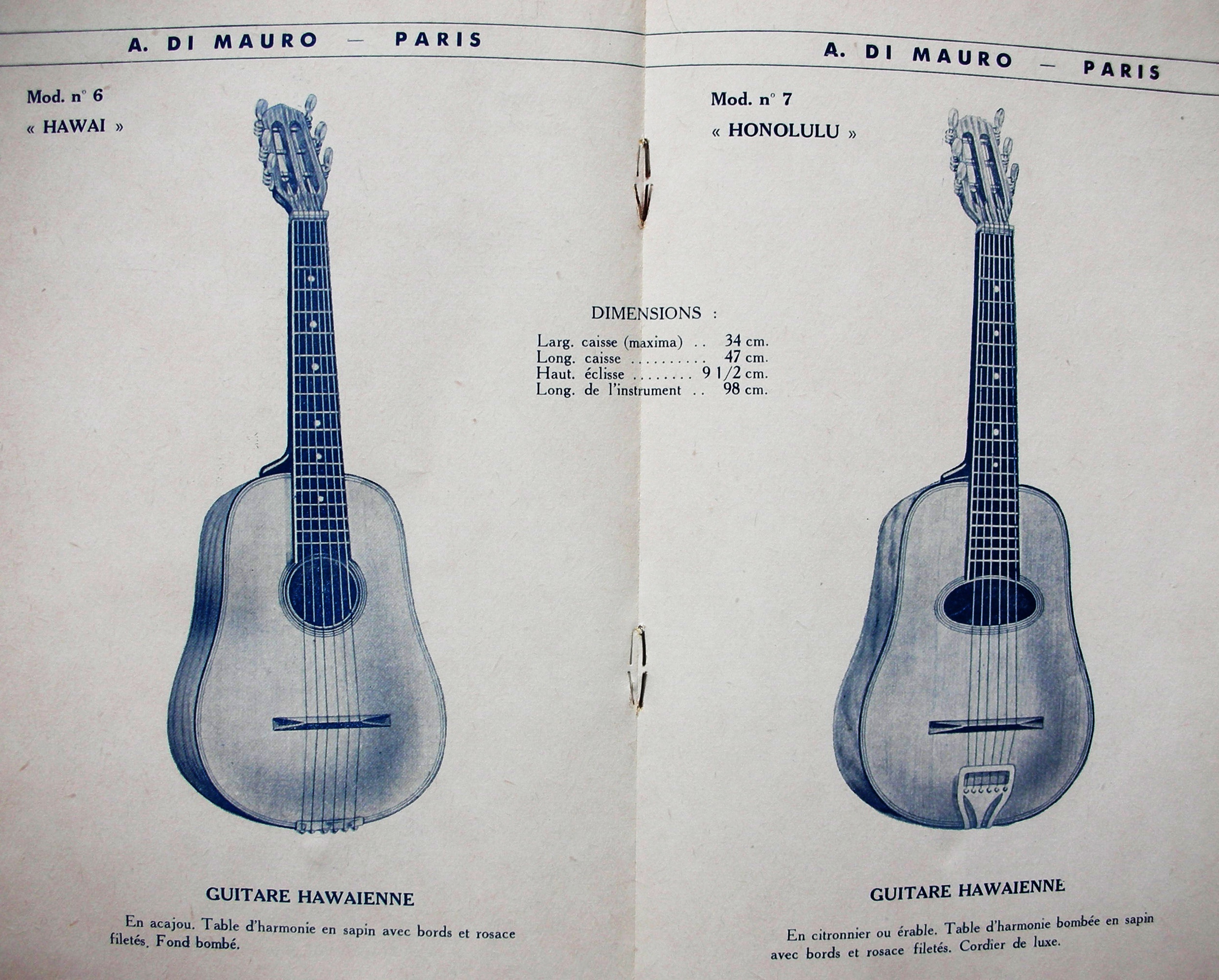 The one described in the ad is the model #7 'Honolulu' with the typical Grande Bouche soundhole, but the lead photo shows a #6 'Hawai' model with the regular round soundhole.