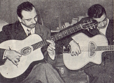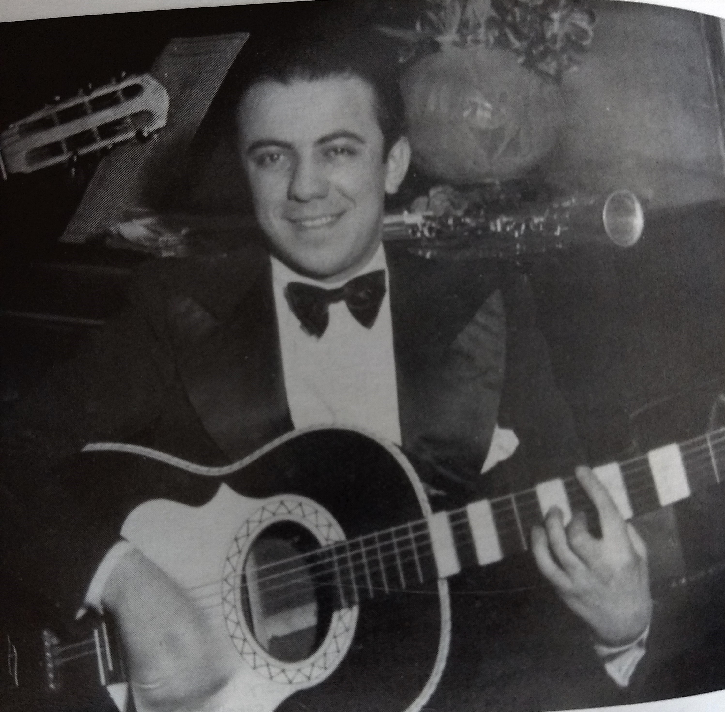 Here's a more detailed photo of the heavily ornamented black Carbonell probably taken in Marseilles c1935. Man, I wonder what ever happened to this guitar... The thief probably just tossed it in the river.