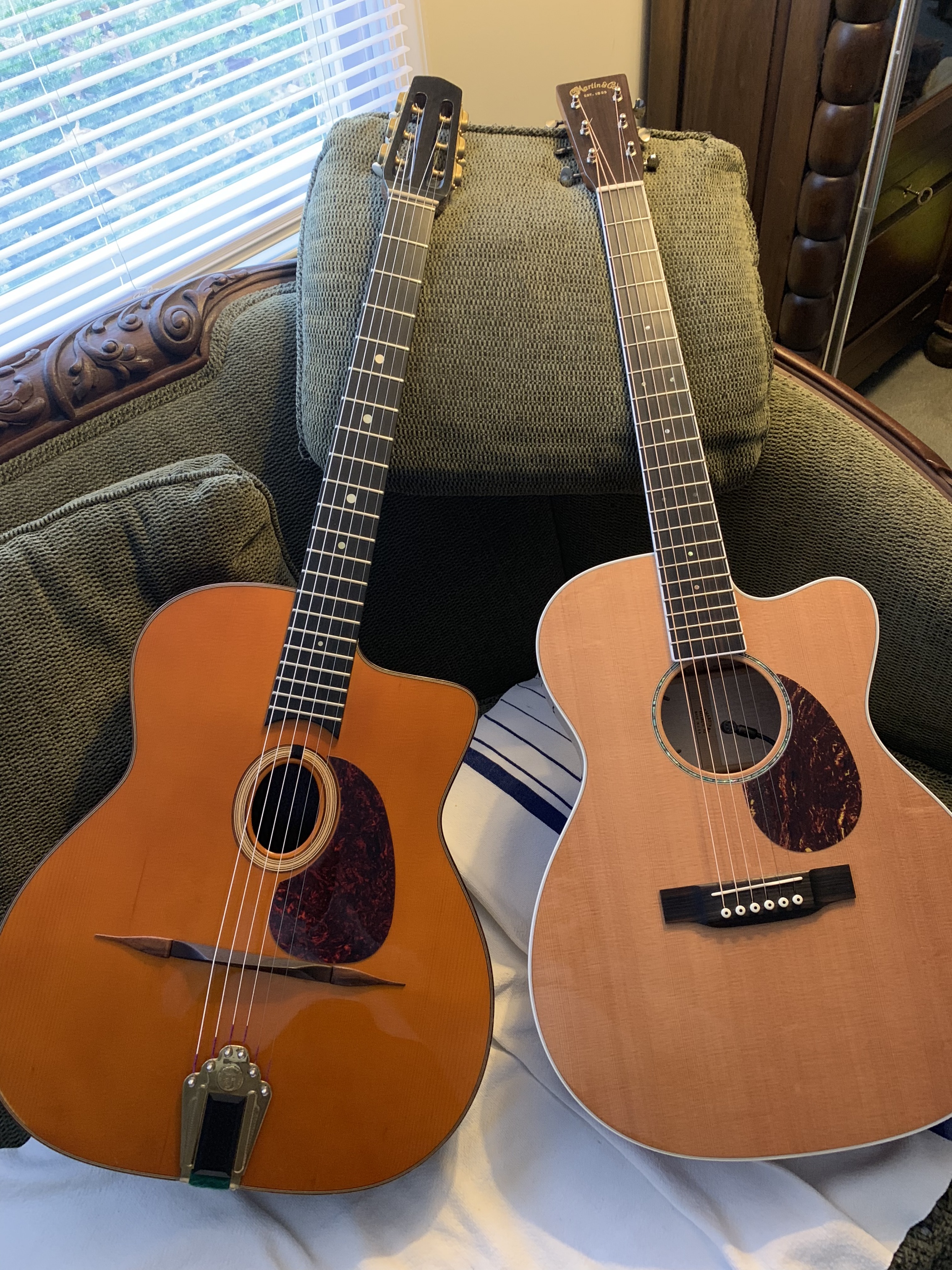 I’m selling my Zwinakis mystery. It is a Selmer petite Bouche copy in very good condition. It has been set up and has upgraded DuPont tuners. I am asking $2000 for it because of the quality of the instrument. If you want more photos, I can send them later when I am at my computer. Also, ignore the photo of my d-28. I can’t figure out how to remove it. Thanks.