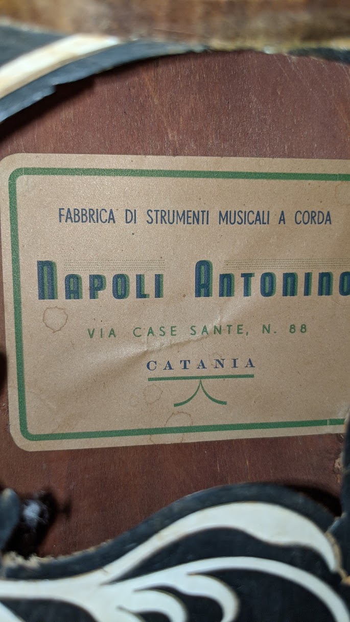 an Antonino Napoli 'Pavone' guitar, found on t'internet: The label looks a little more modern than mine, post-WW2 certainly.