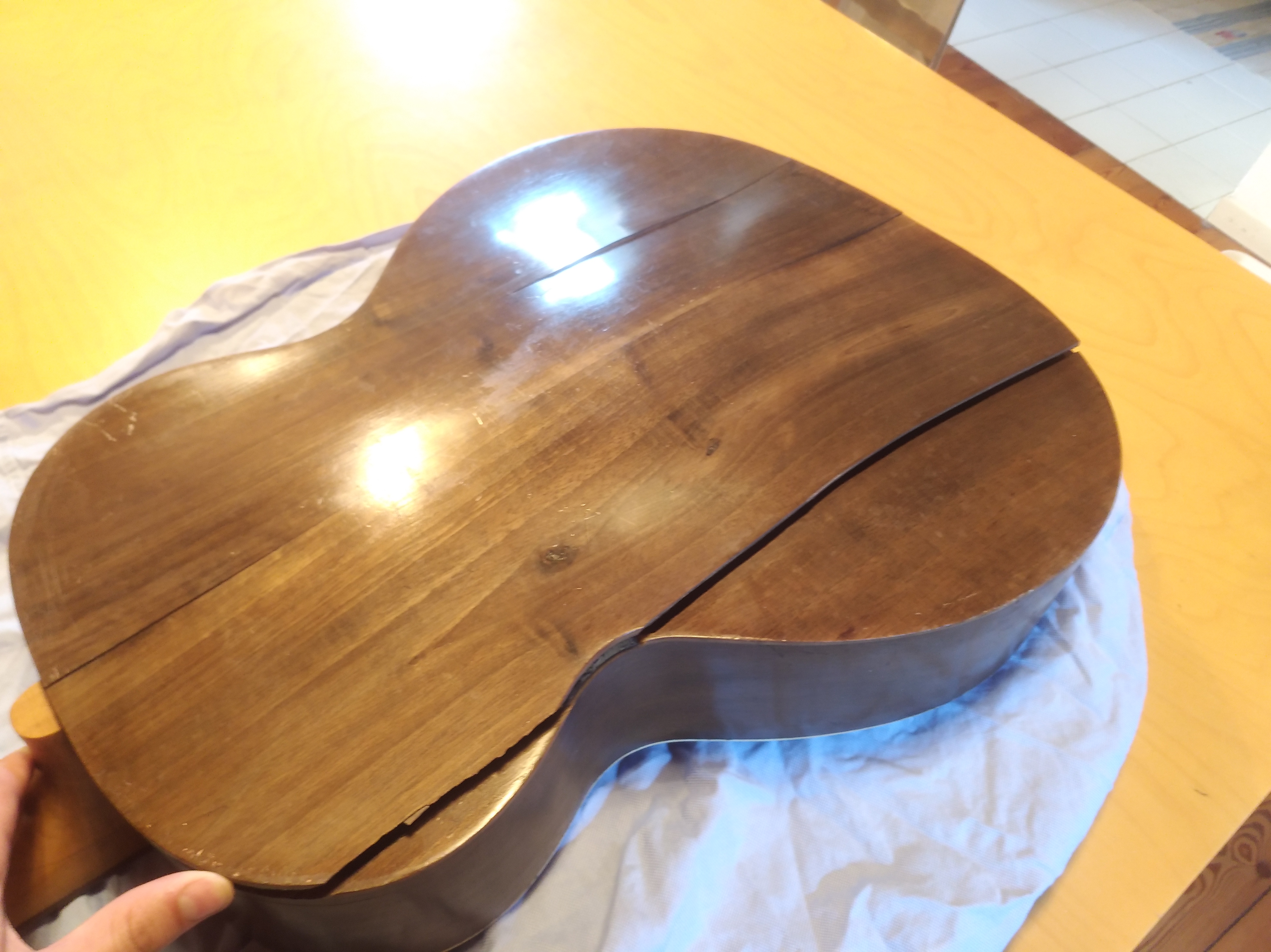 Hi everbody, I was studying the Salvatore d'Angelo guitar before start working on it and I was wondering If it was better to remove all the back (with iron/steam), regluing all the pieces togheter or If it was better to reglue the cracks right on the guitar, so clamping and squeezing the guitar.