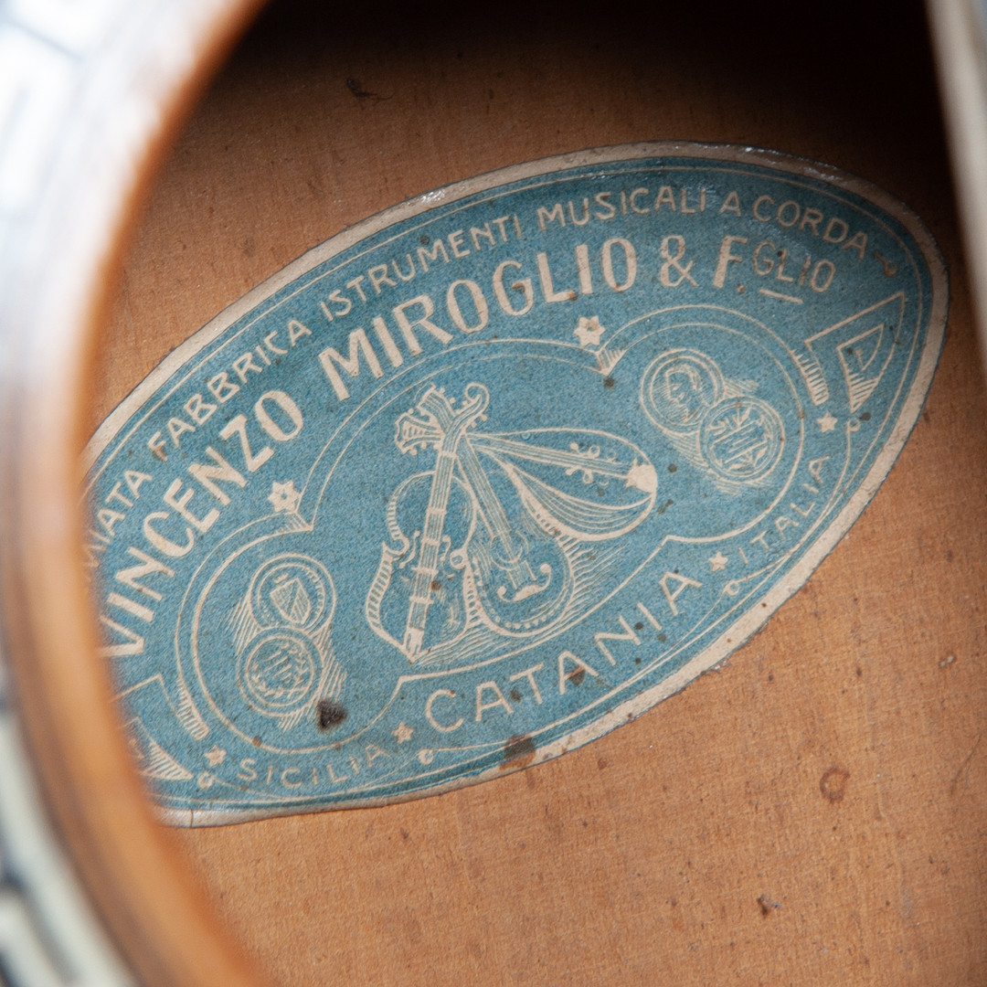 A few pictures of what I'd call a Musicalia or Musikalia guitar sold in Sweden last year, but carrying a Vincenzo Miroglio e Figlio label - perhaps another indication that the Miroglio family business was buying guitars from other Sicilian luthiers/workshops, and (re-)labelling them for resale or export.