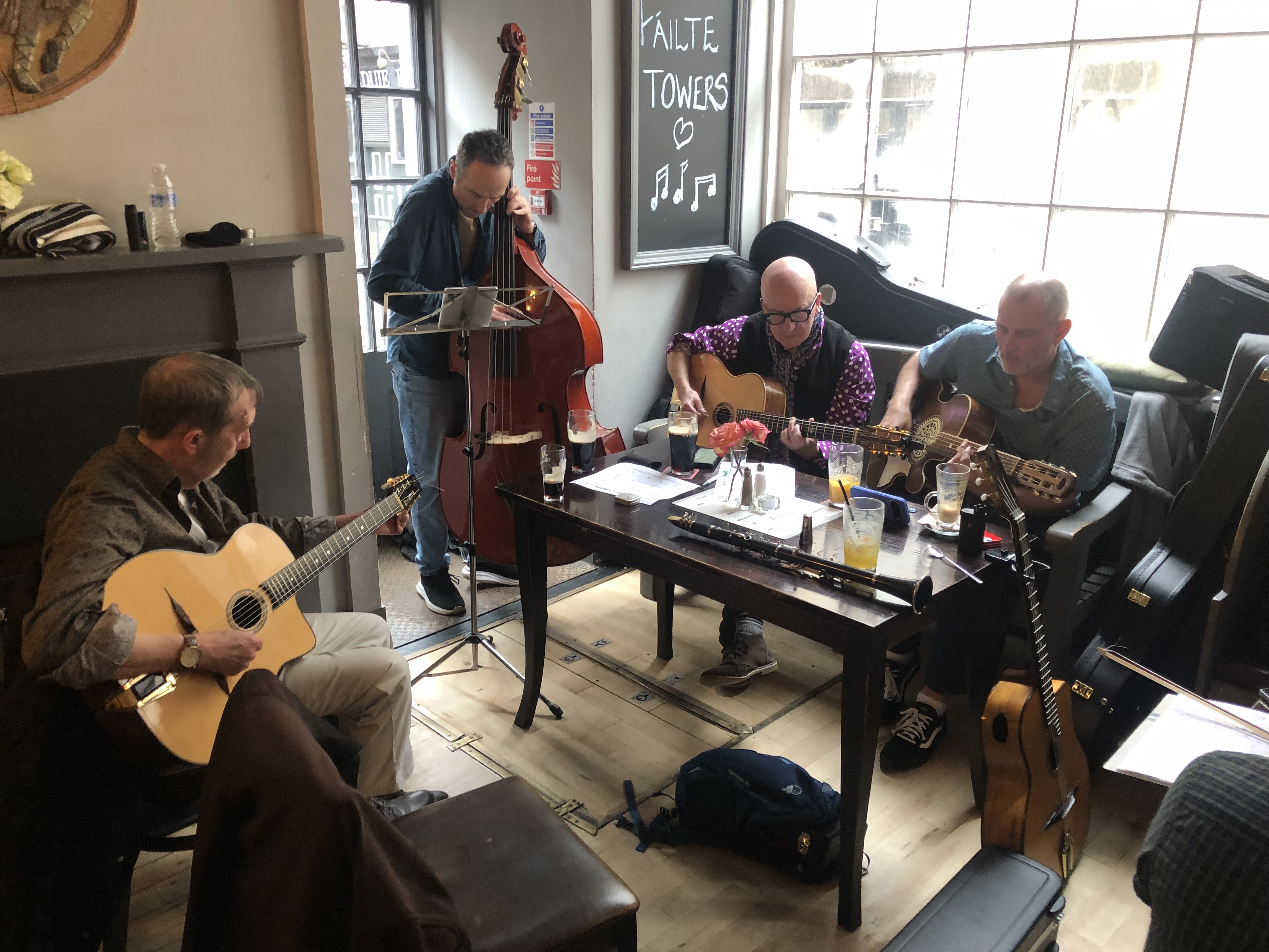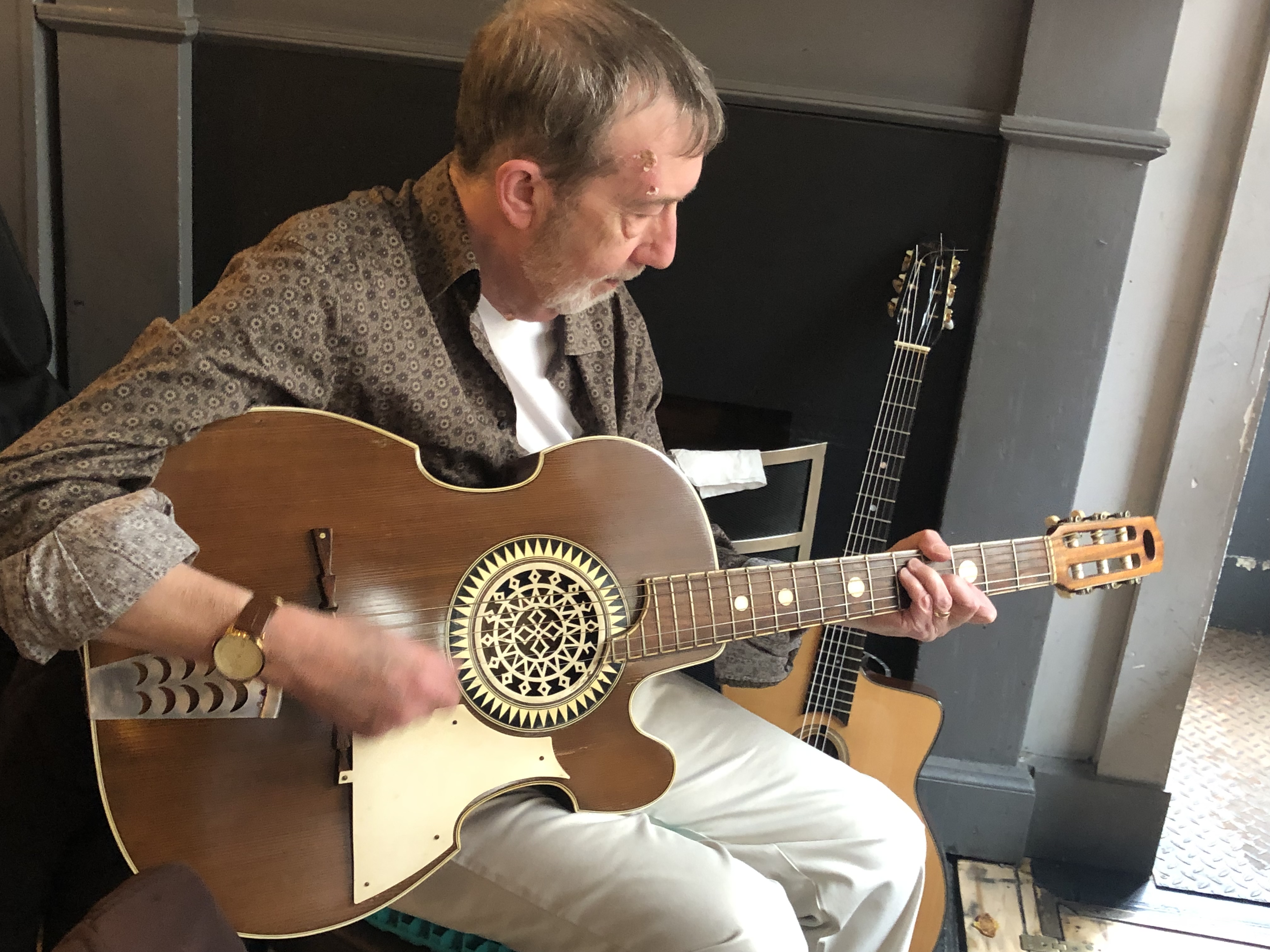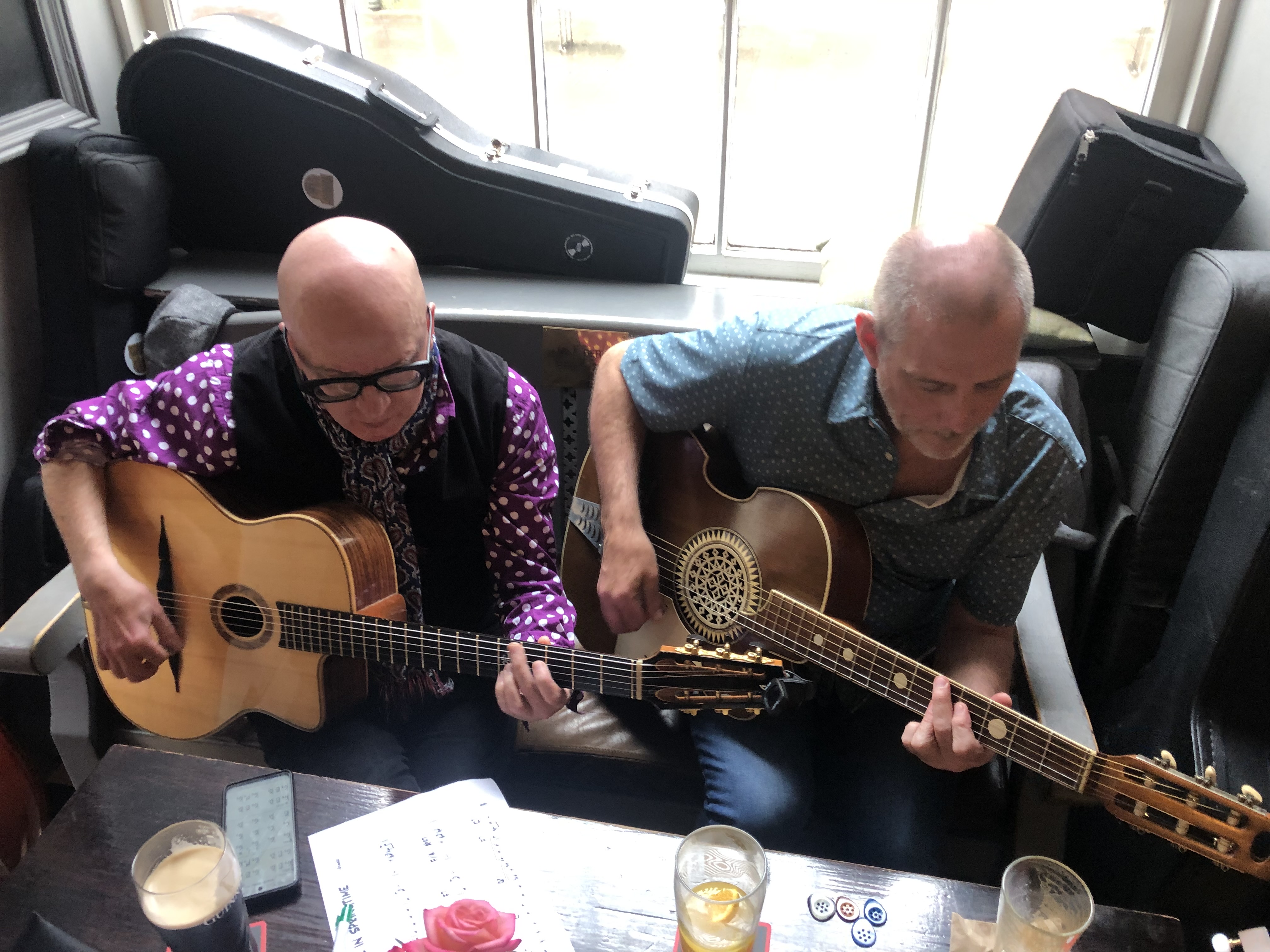 IMHO, these guitars need to get off the wall and into the hands of players, so I took my Modele 22 up to the hot club jam in Glasgow today. In the hands of Alan @crookedpinky Gow and Crawford Milne .