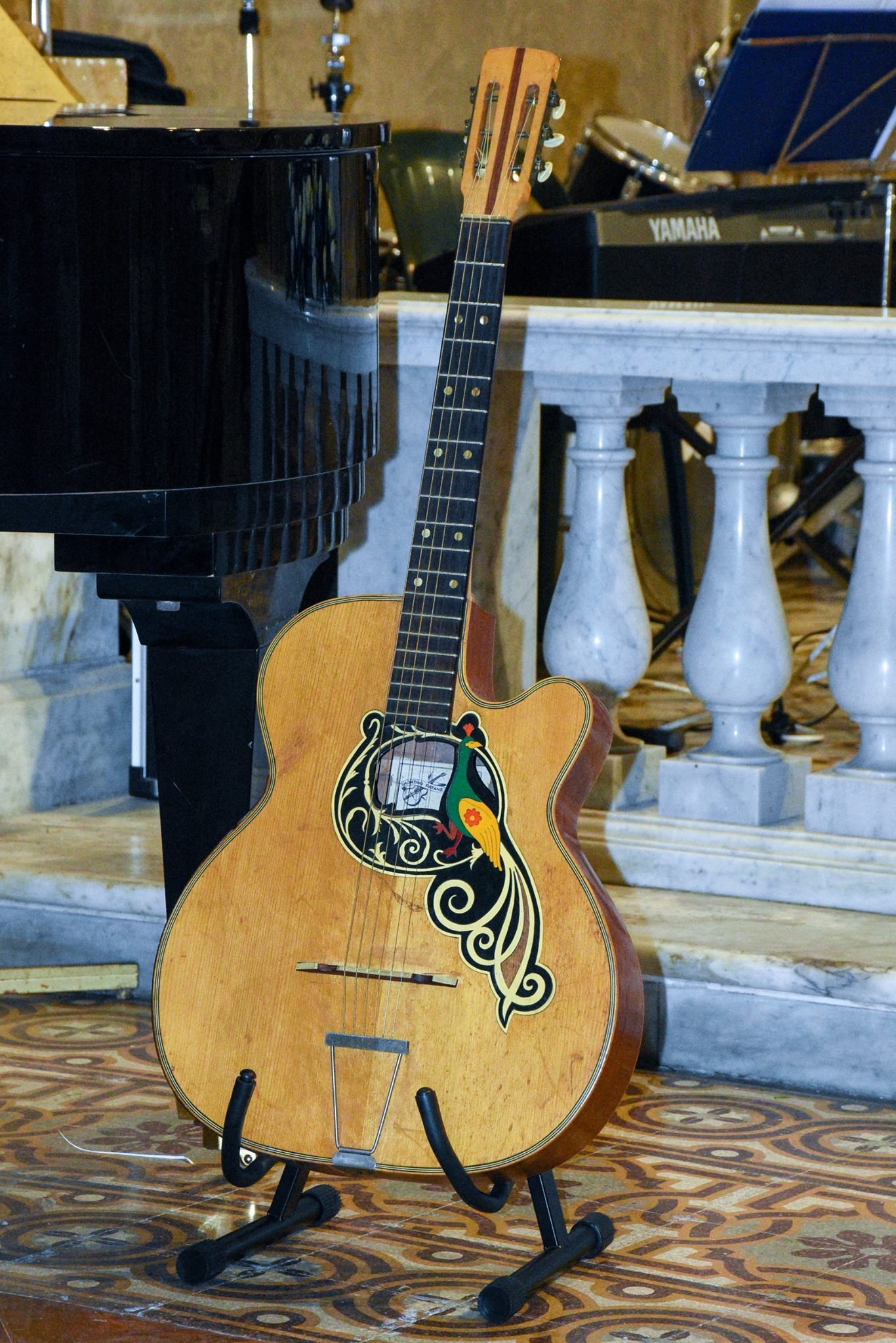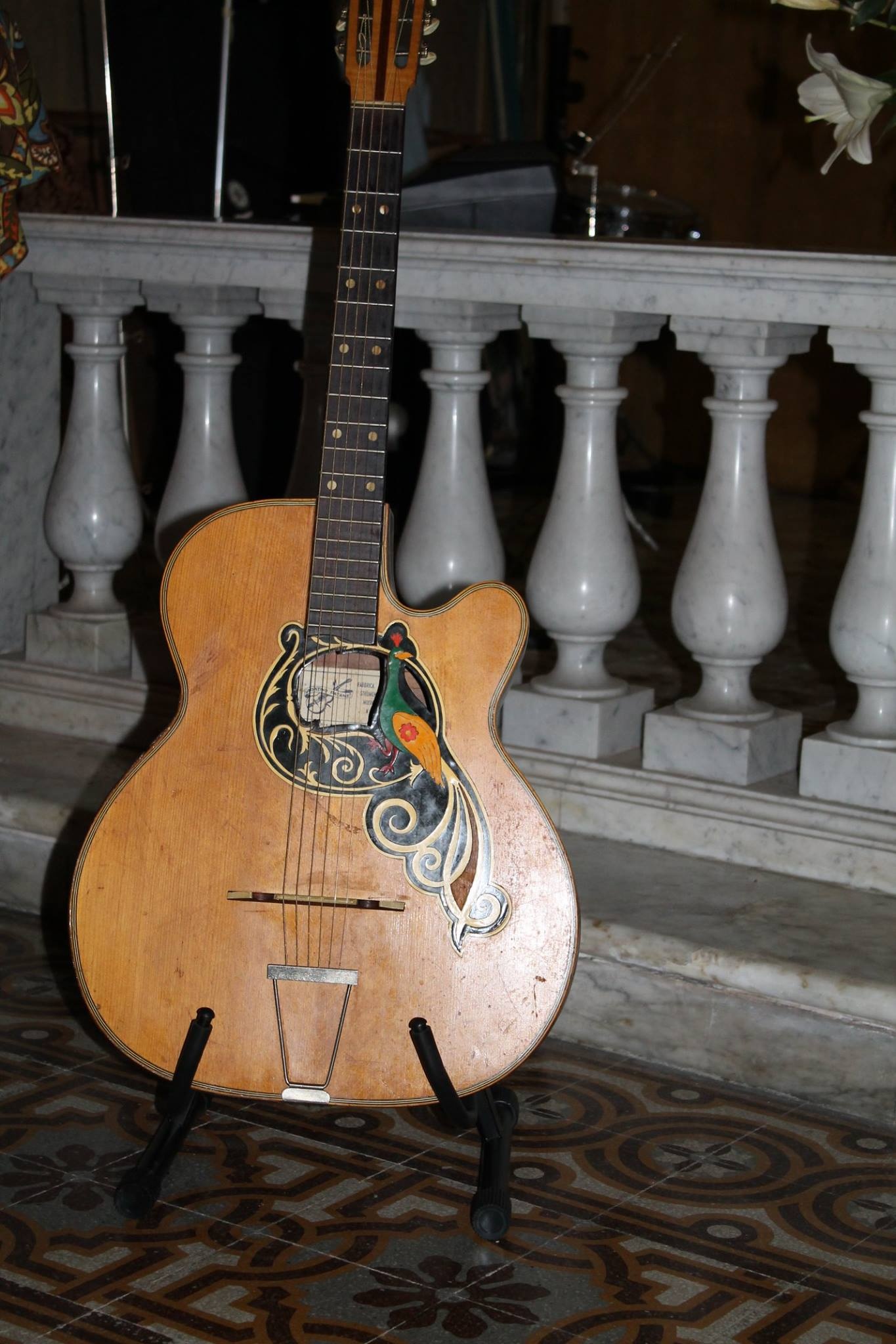 An attractive gypsy style guitar with lyre-bird / peacock inlay, by Agatino Patané, of Catania, Sicily.