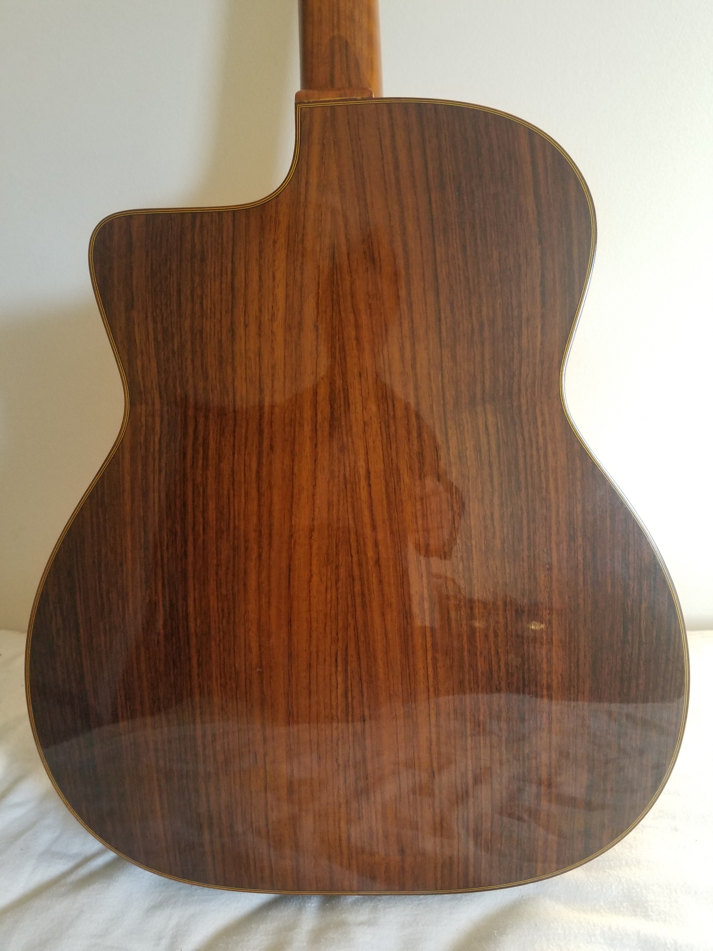 Beautiful wood throughout and superb build quality. Neck is a shallow D shape. Small chip on headstock veneer (see photo) It was purchased this way. Condition is excellent, comes with the original case, Superior Deluxe Brown.