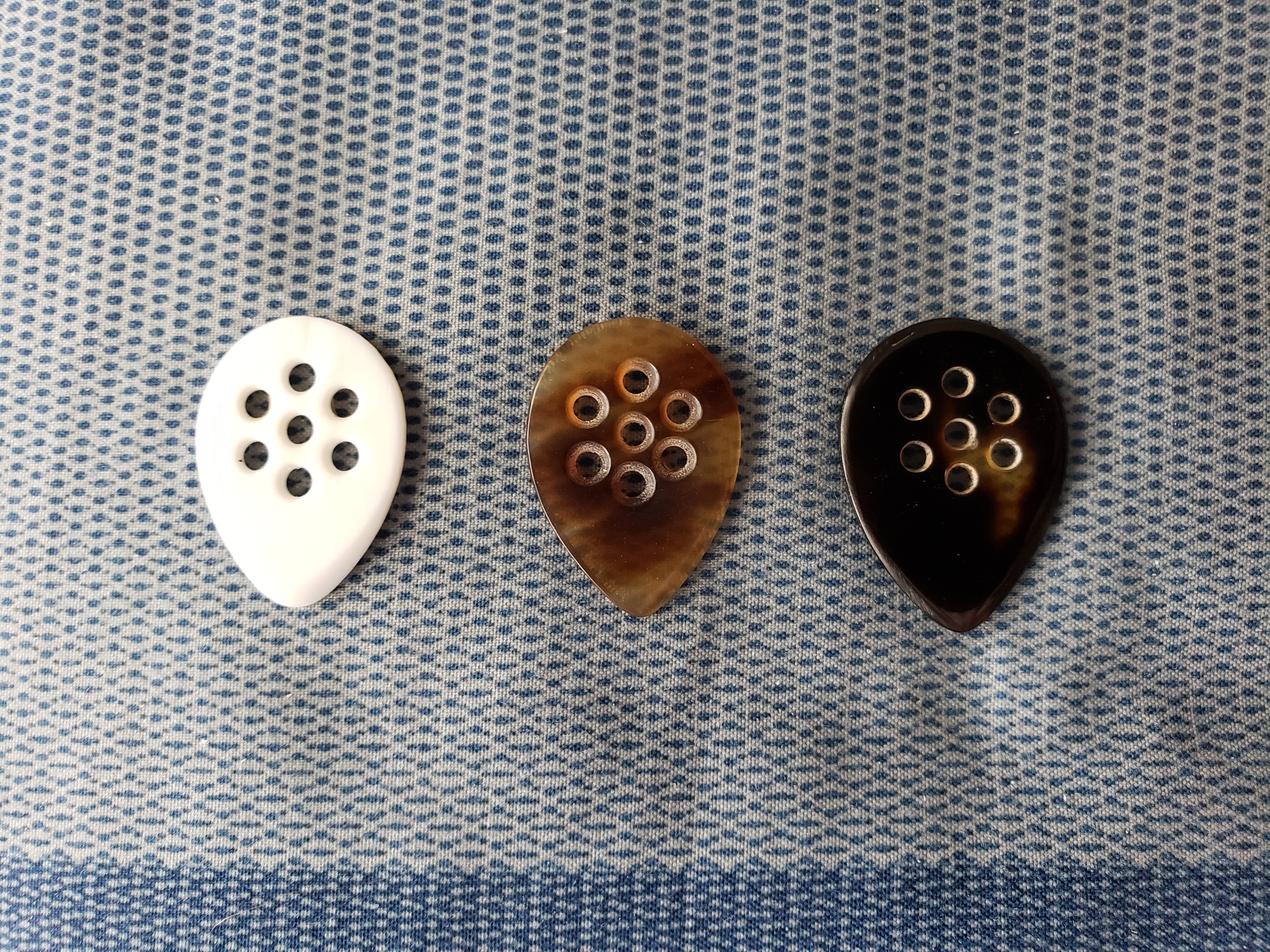 The CvH is still a monster with very loud clear tone. The big city is still very much in my top 3 as it provides a loud tone, slightly more understated than the CvH but still excellent, and is really comfortable in my hand. I can always index it without looking and know right where the tip is.....I found a pick maker overseas with a stash of antique tortoise shell and he custom made me that pick in 2mm. That thing is the most comfortable pick I have ever held in my hand. The material just melds with my skin and feels awesome. For me, it does not move around like galalith, it stays perfectly put. But, the sound, is incredible! Not quite as loud as the CvH, though still loud and clear, but with this rich warmth and depth that I have not experienced with any other pick.