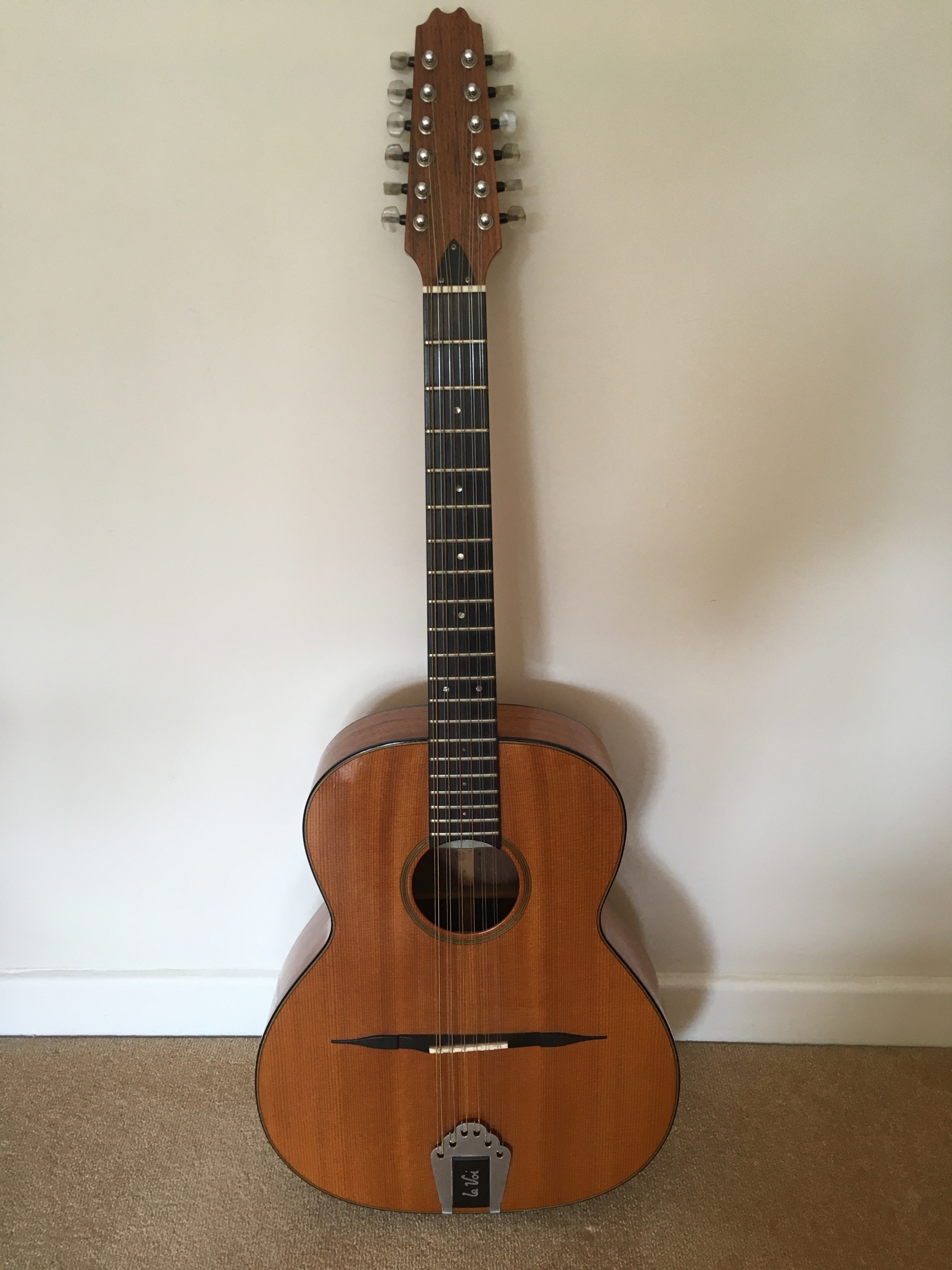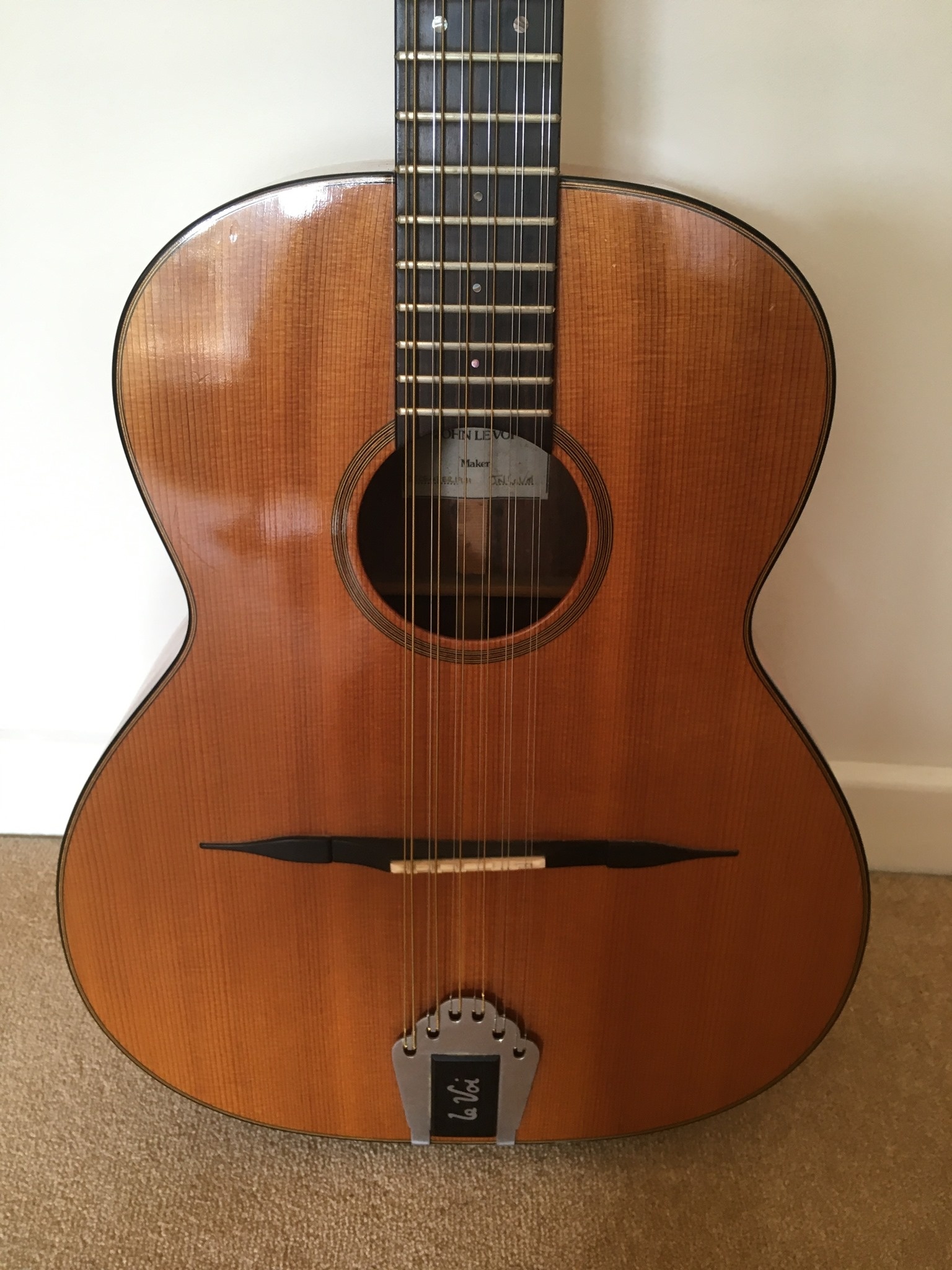 "Wonderful sounding 12 string that's totally playable. Made in 1981 by British Lutier John Le Voi. One of a very small number of 12 strings ever made by John. Famous for his Selmer Maccaferri Style Jazz Guitars. John incorporated the Selmer style into this guitar to make the tone amazingly sweet. The jazz style tail piece helps this guitar sustain like a ringing bell. As you would expect from a world renowned Luthier it is made from the best tone woods"