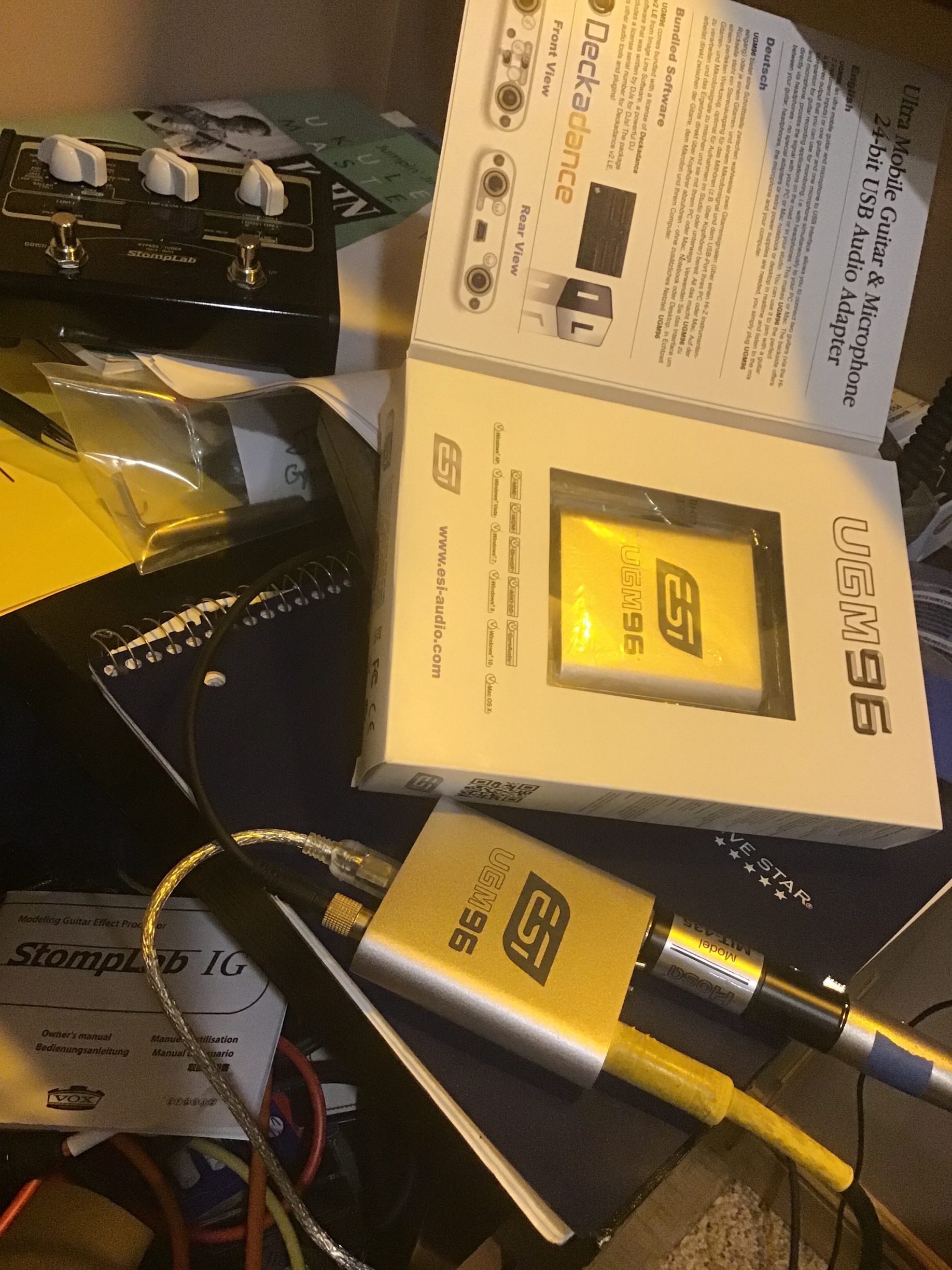 You can use JK with audio software but you don’t need to. I’ve done it with Reaper to use plugins, but now I jut use the JK program. I play guitar, bass, and sing so if I’m playing bass I run the headphone out of my amp into the interface; for electric guitar I use a Vox Stomplab for amp emulation before the interface (BTW this sounds good through the Compact 60); for acoustic guitar an vocals I just use a condenser mic, no effects.