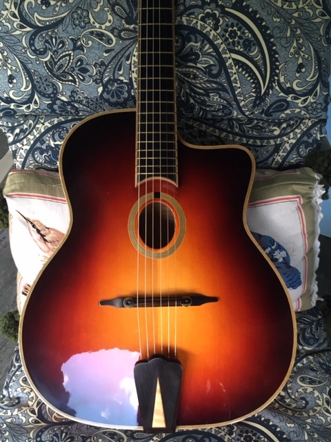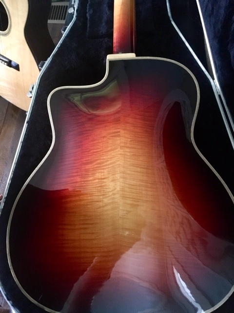 This Beauty was built for the 2012 NAMM show bye the Yun Zhi Cats right after they left Eastman guitars...Serial number is 0026! Just a sweet sweet ride...This guitar was purchased by a well know player who fell in love with her at Namm but he preceded to never play her! He eventually had a Peche pickup custom fitted with Brazilian Rosewood to create a perfect fit on this guitar..The Burst is as good as any I have ever scene...All solid woods hand carved with a highly arched Adirondack Top and Highly Flamed and arched maple back and sides...Boutique quality across the board on this guitar...Evo gold frets and wide maple binding everywhere...A Somewhat beefy D neck with a 1.75 nut width and If this had another name on the Headstock we're talking 3-4k for sure...She's plenty loud enough to be played acoustically at a jam or rehearsal and the Peche sounds really nice...The only marks or imperfections are from the Peche...The Peche and the chord are of course included and she is 16 inches wide at her widest spot and 3 3/8's deep not including the Arched top and back areas...