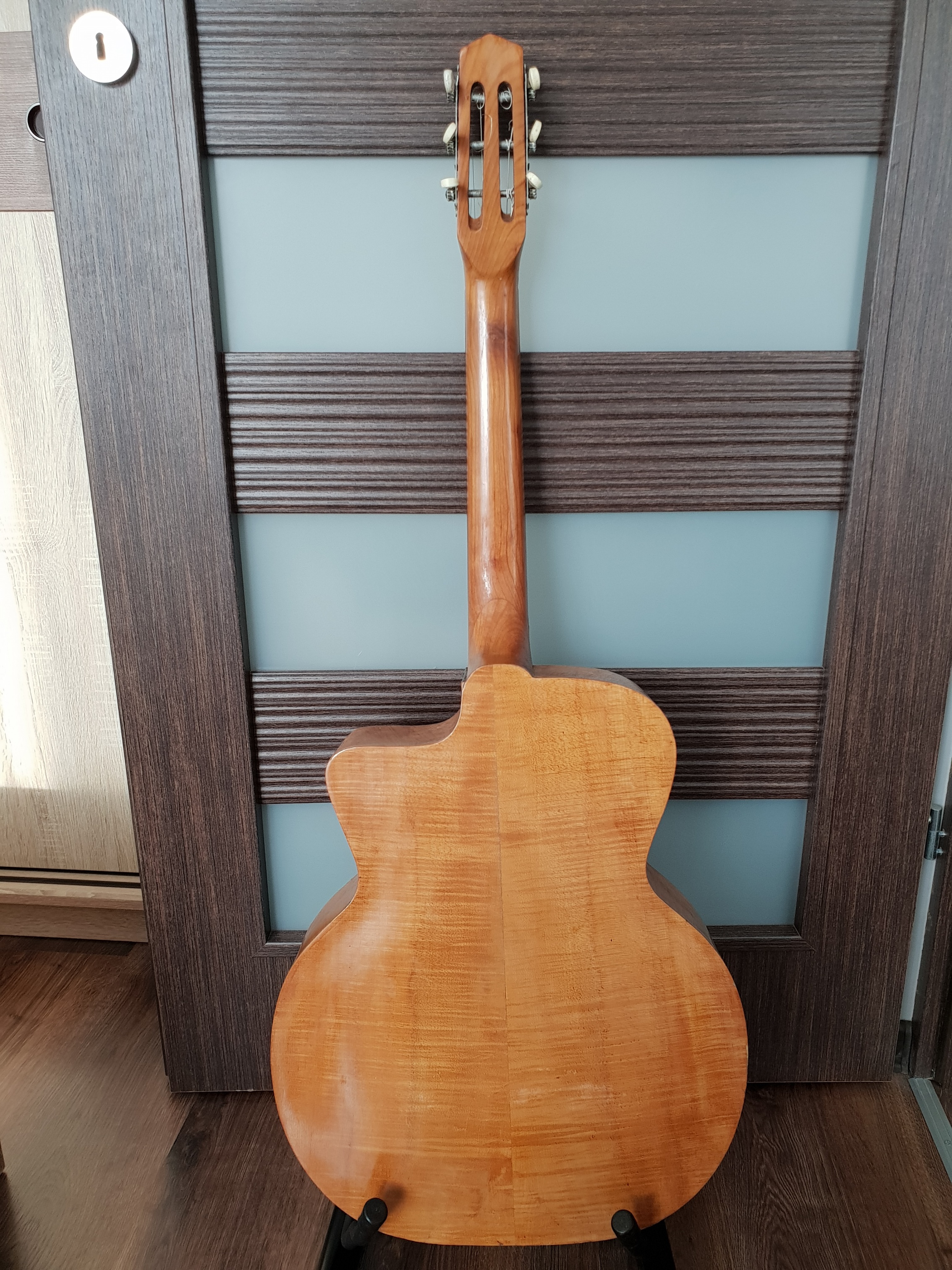 I know it can stir up a lot of trouble whenever one mentions the 'B' word but the shape is reminiscent of early Busato. Remember the early ones were all truly hand made and they all seem slightly different but the one constant would be the outline of the body as that was dictated by the body molds and this one is identical to one of the shapes Busato used. Busato himself was too busy to make guitars himself after 1952 and many so-called Busatos were sub-contracted or made by employees which is why there is so much variety (and mystery).
