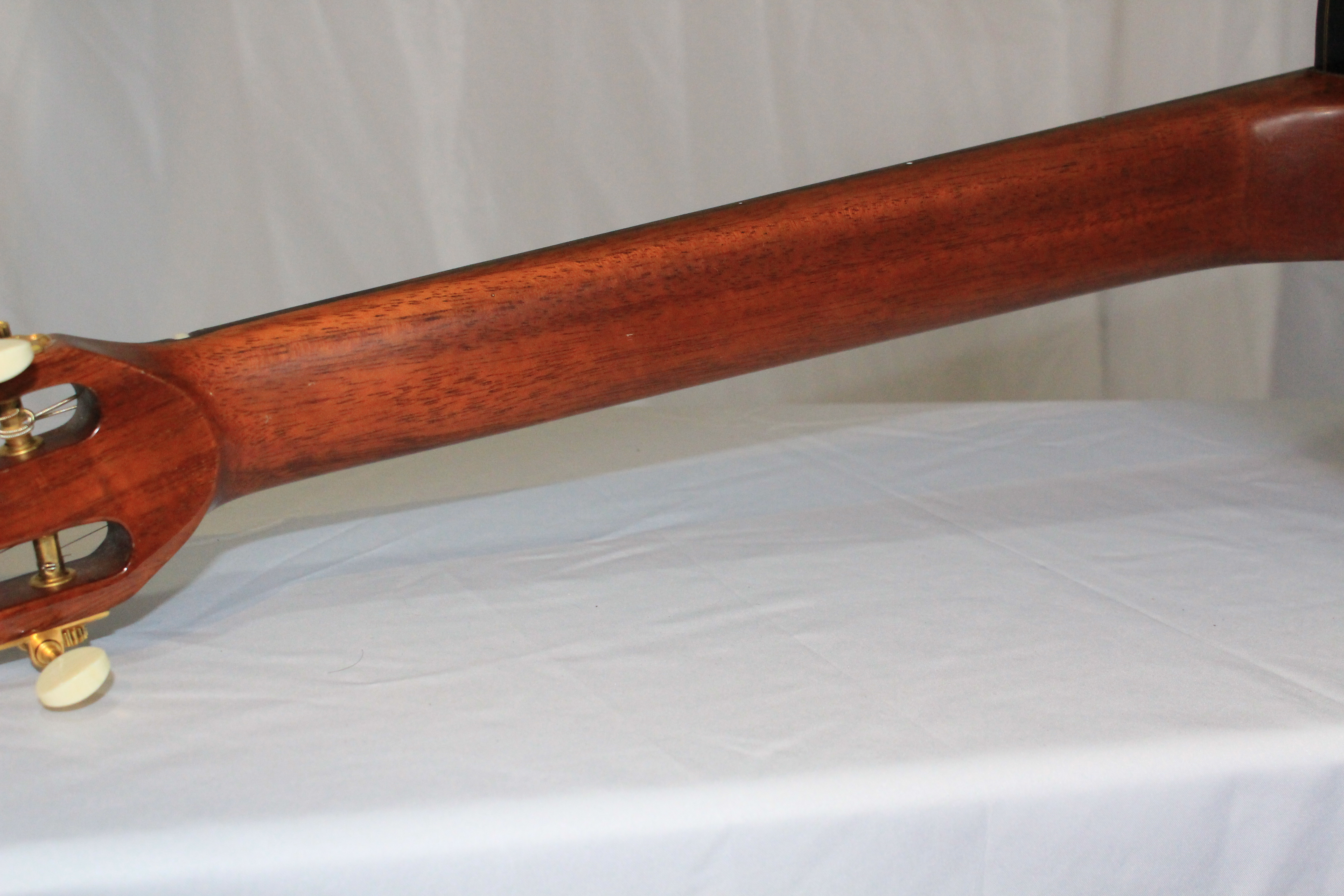 Spruce top, rosewood back and sides, Dell Arte upgrades the bridge, tailpiece and tuners. Plays well with action set just above 2.5mm on bass side and just below 2.5 on the treble. Price includes hardshell case.