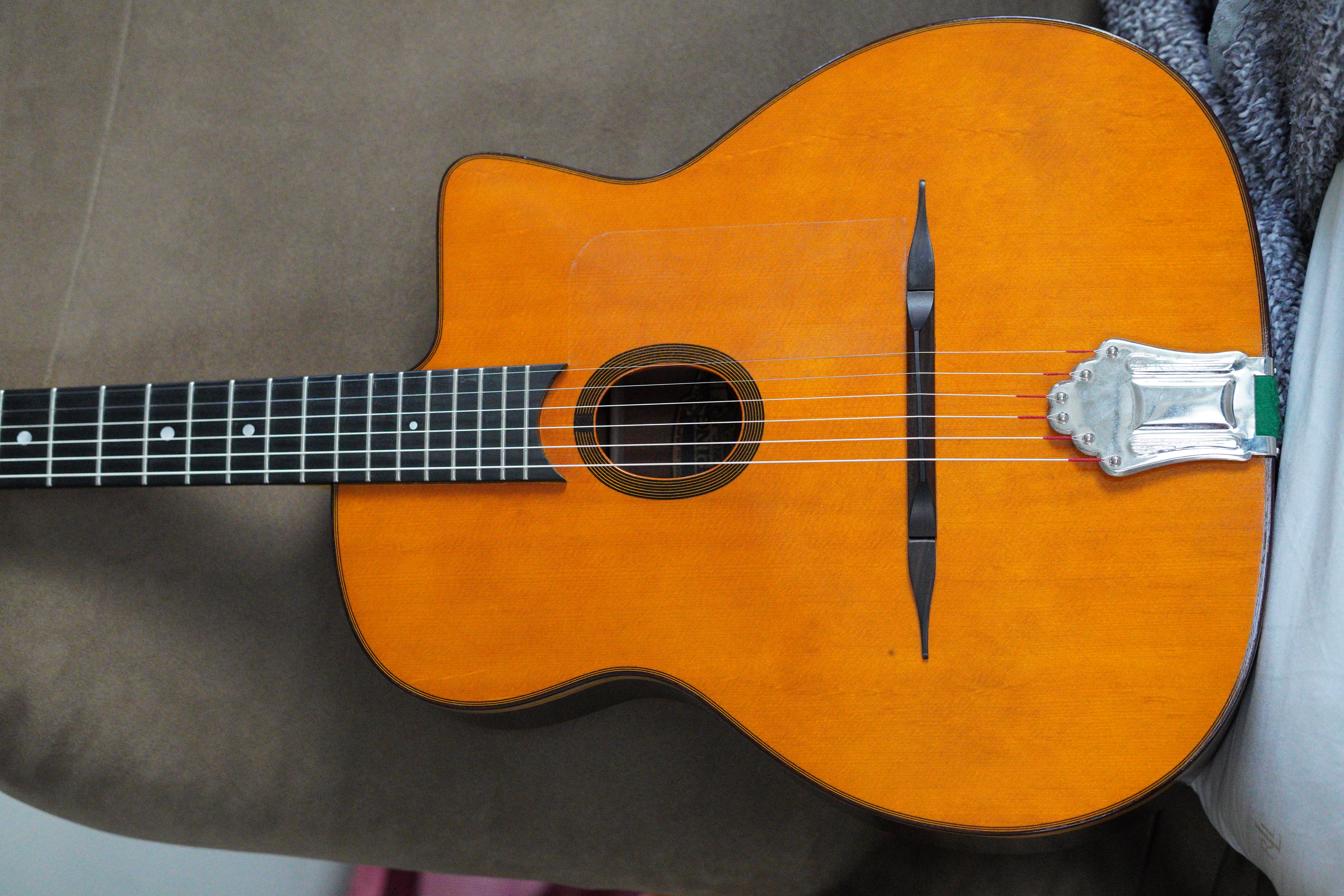Clear, thin Mylar pickguard that can be removed without hurting the finish (and still shows off the guitar)