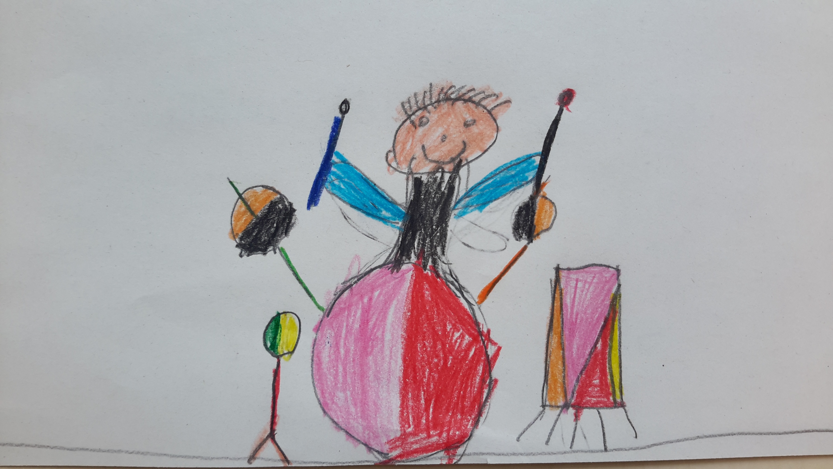 @Buco I will report your assessment to Luca; he sent the picture to me commenting "I'm not that good with drawing, it's only stick figures". As a saxophonist (playing for two years now) he is gaining more and more self-esteem, as an illustrator he still needs a lot of it ...