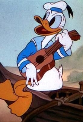 Donald Duck, playing uke
