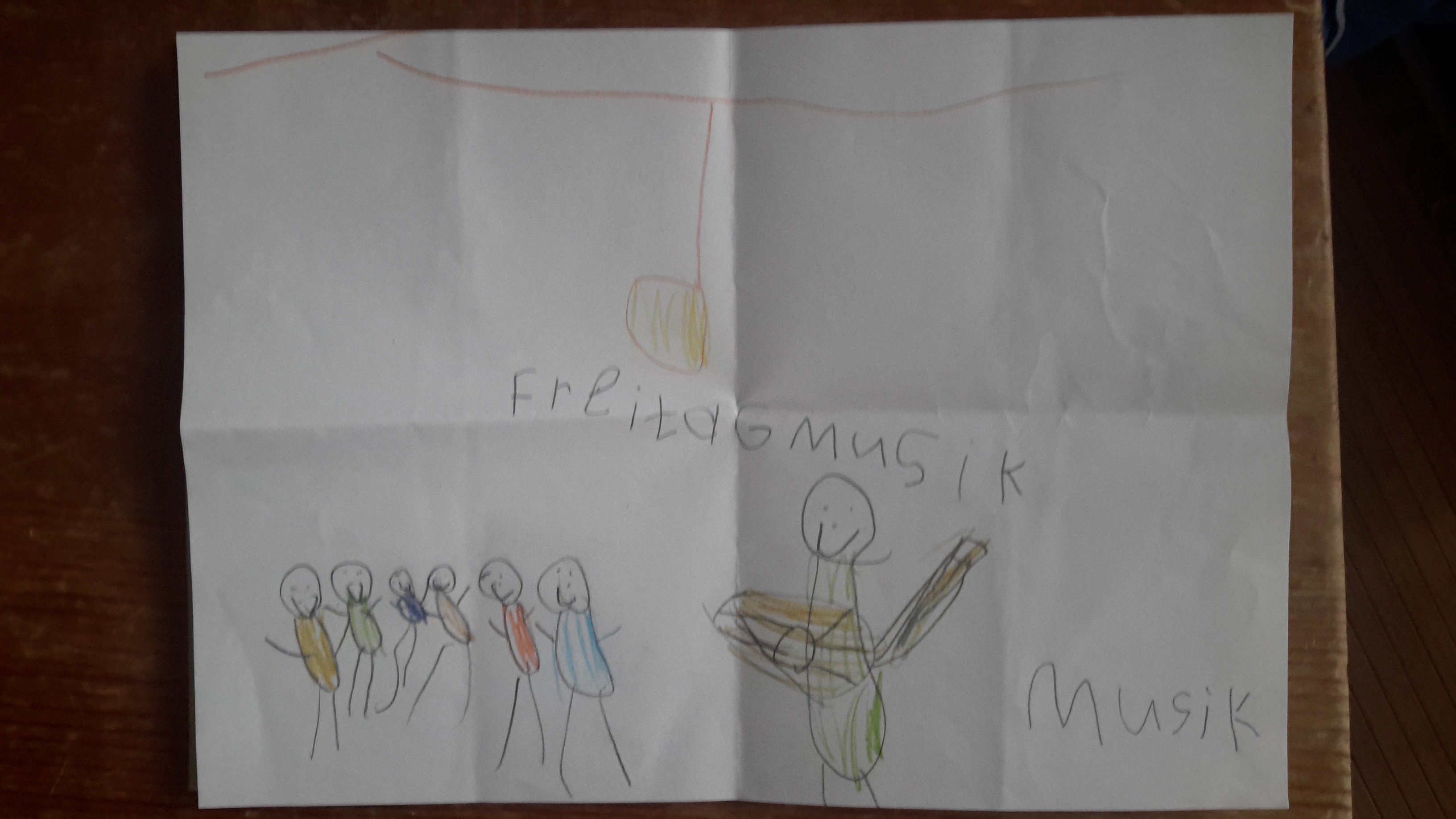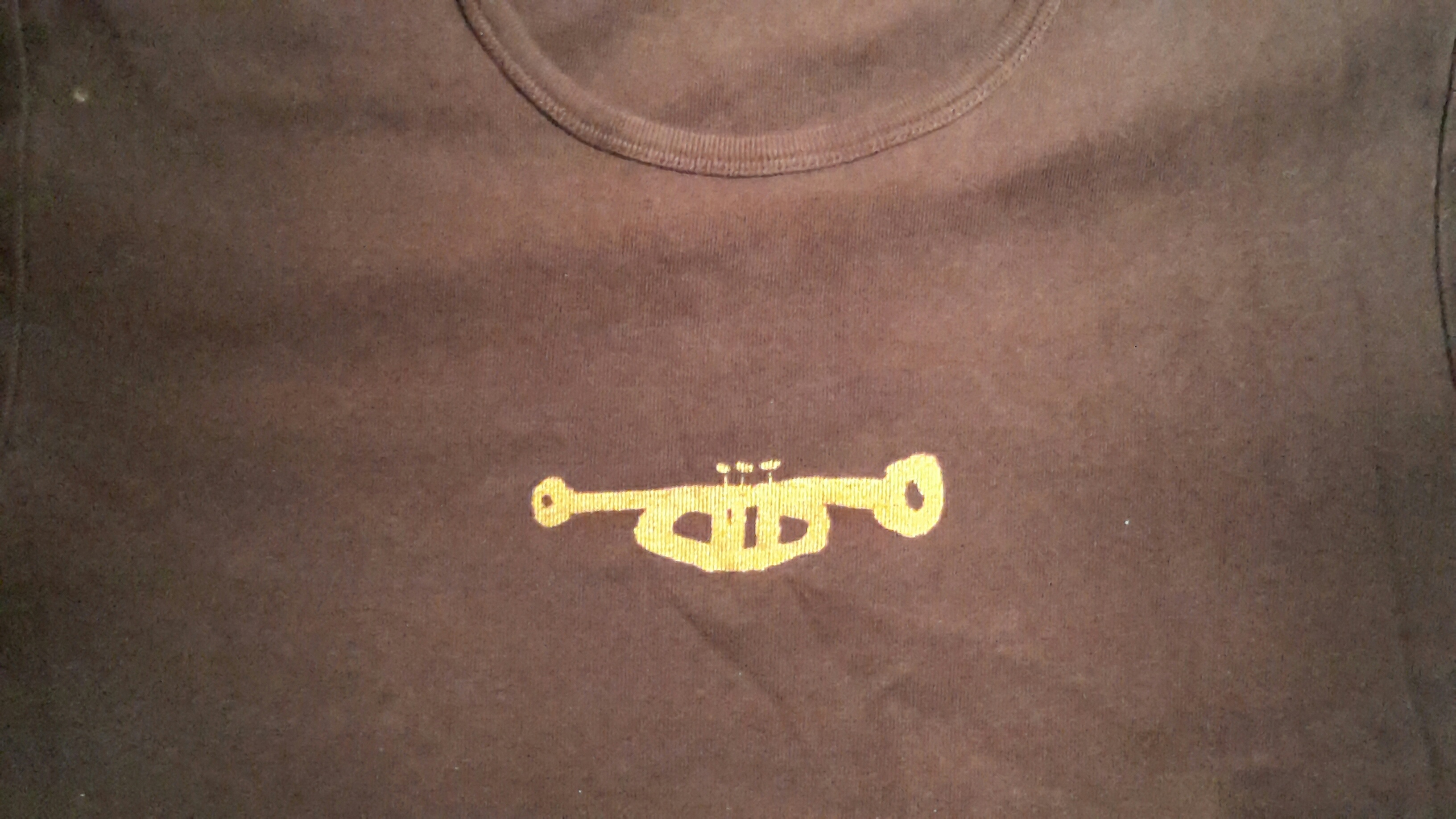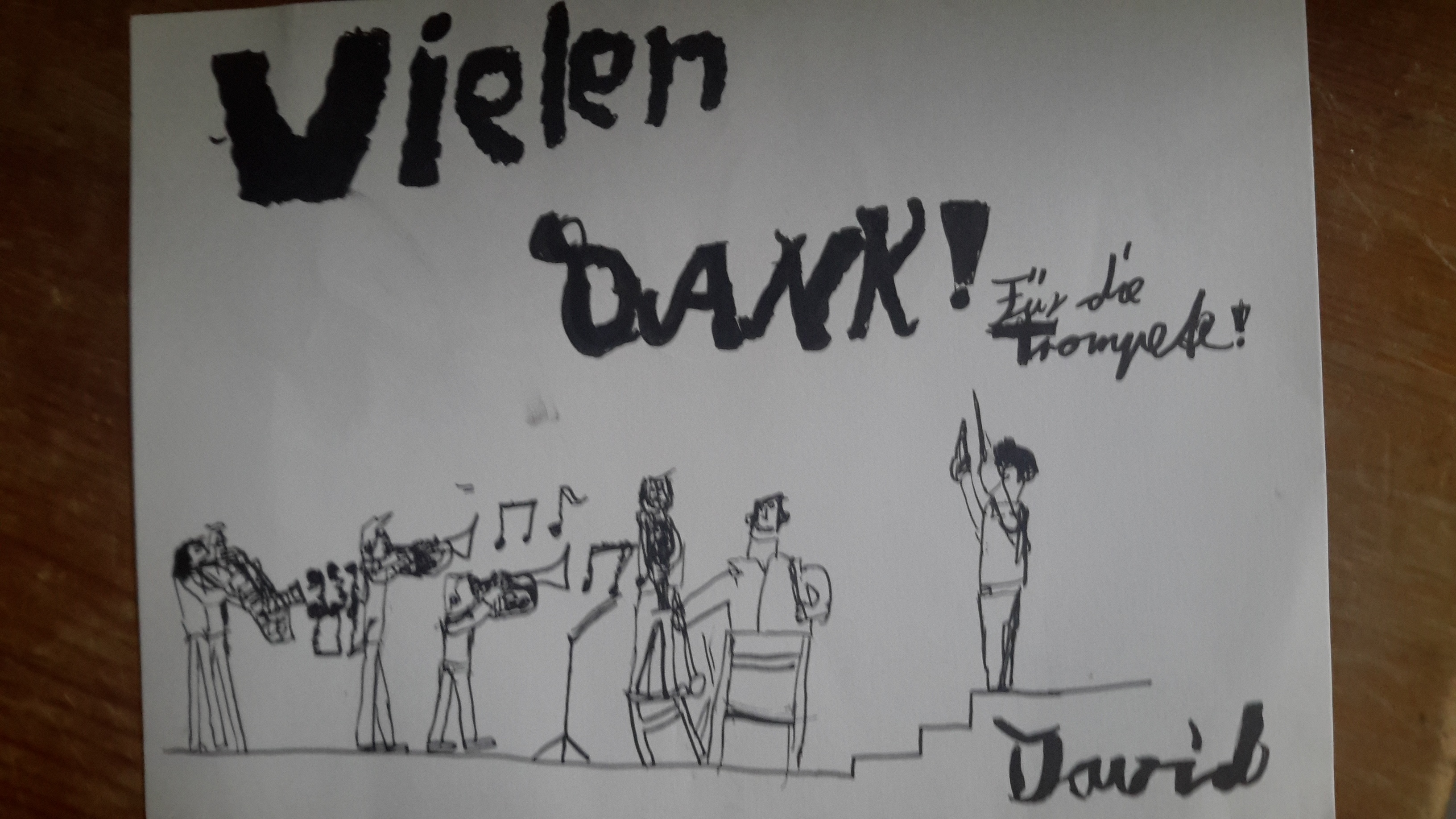 David learned to play the cornet in my class, so did his elder brother (he made the t-shirt in the picture below), and his younger brother will start next year. Their sister ist out of line, she plays the cello. In several primary schools in Hamburg every pupil is learning to play an instrument from 3d grade on. In our school, we have cornet and tenor horn, alto saxophone, flute, recorder, accordion, keyboard, violin, cello, guitar, drums.