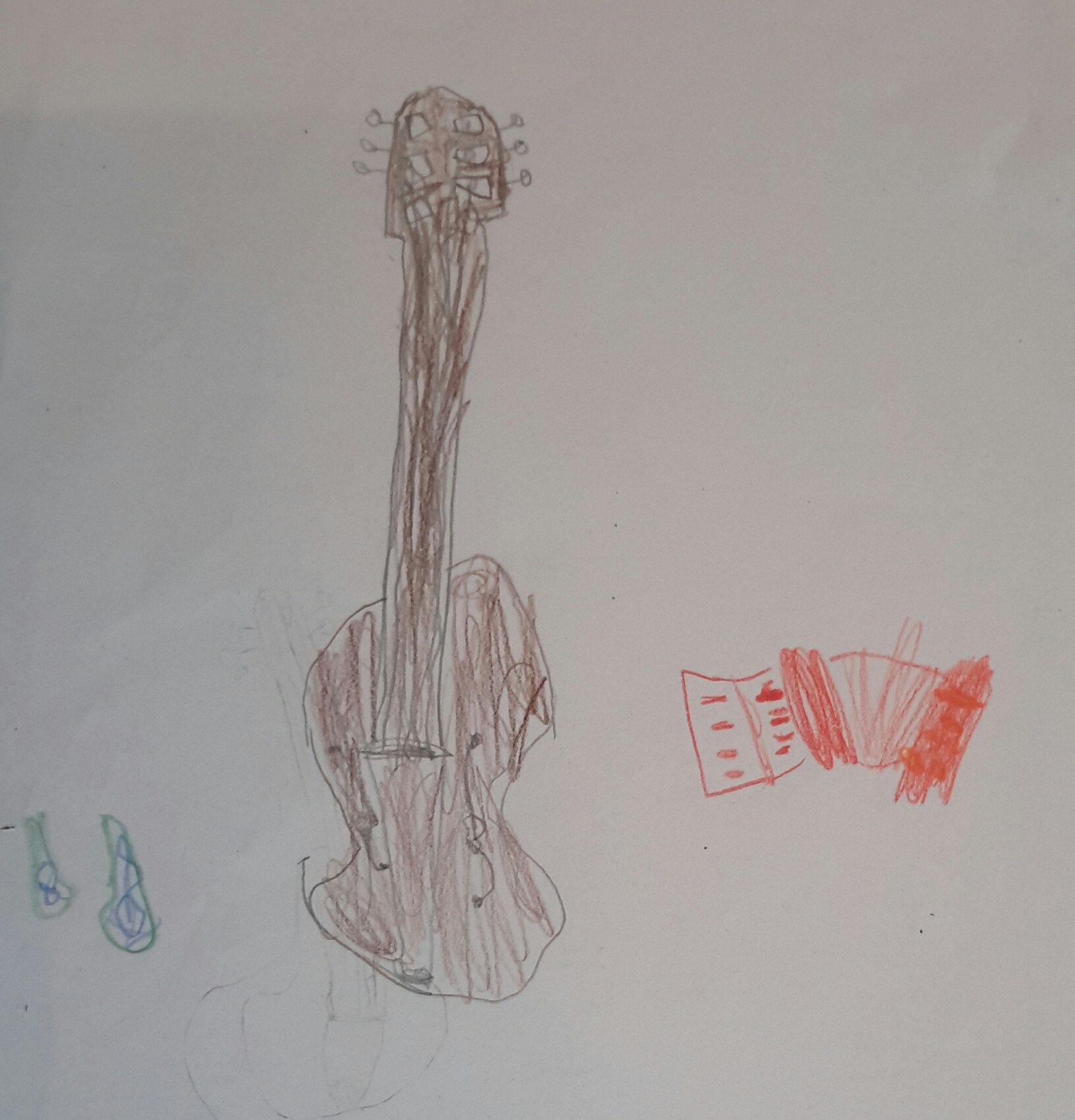 Small (and big) children draw guitars and other musical impressions