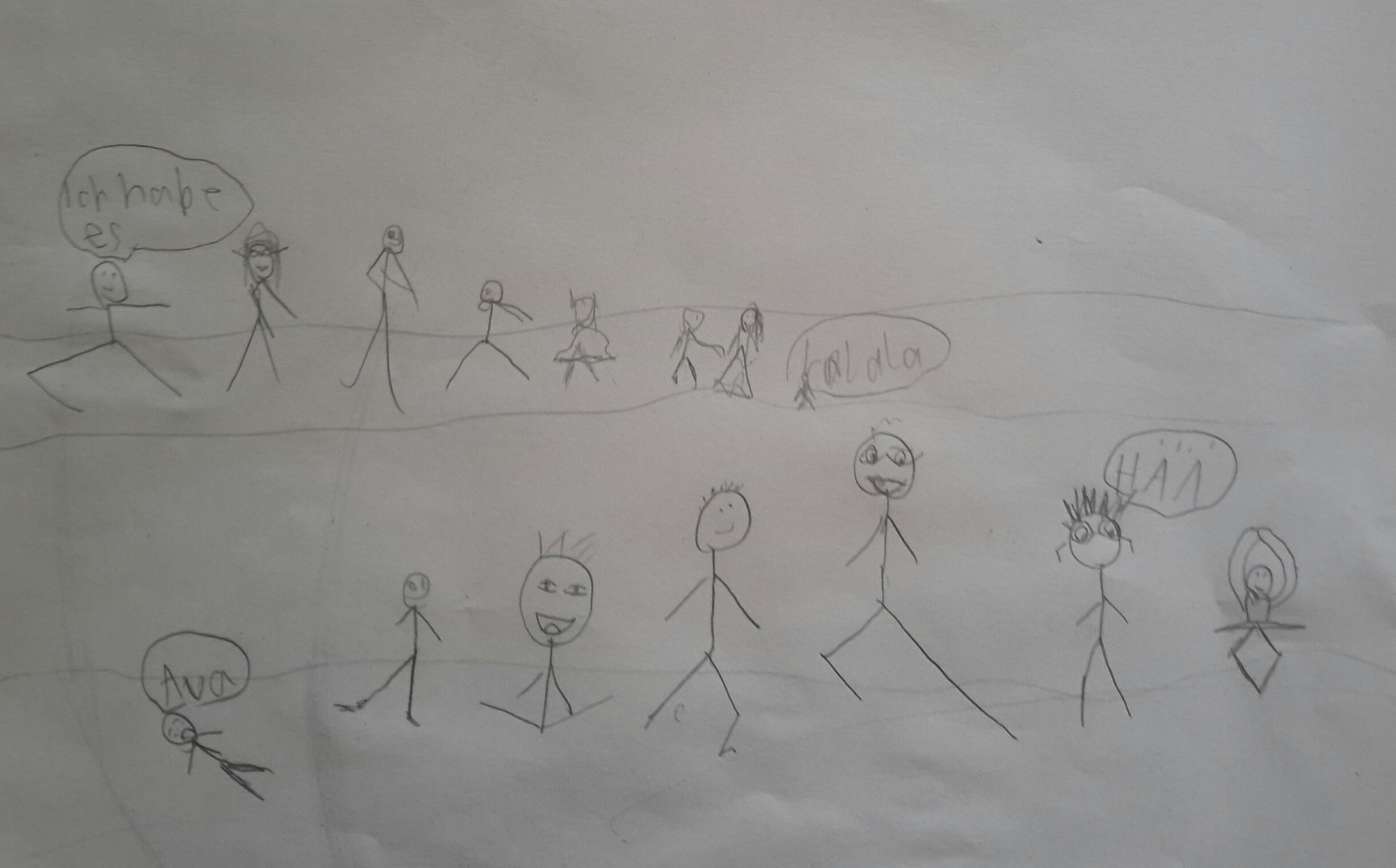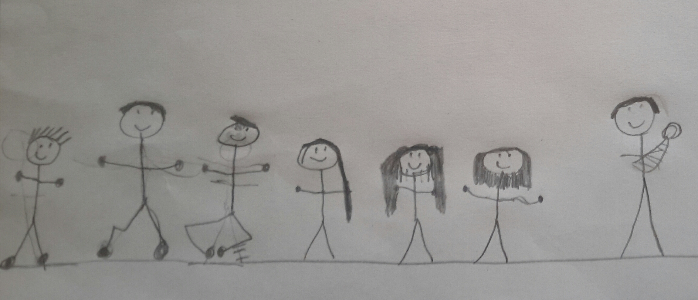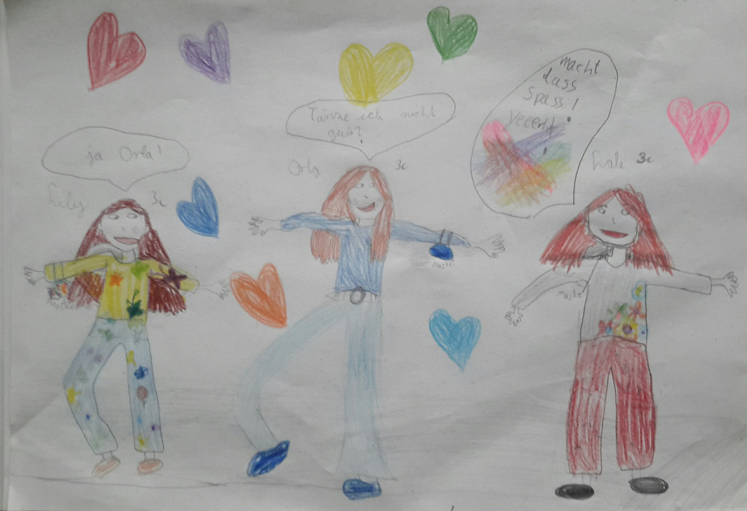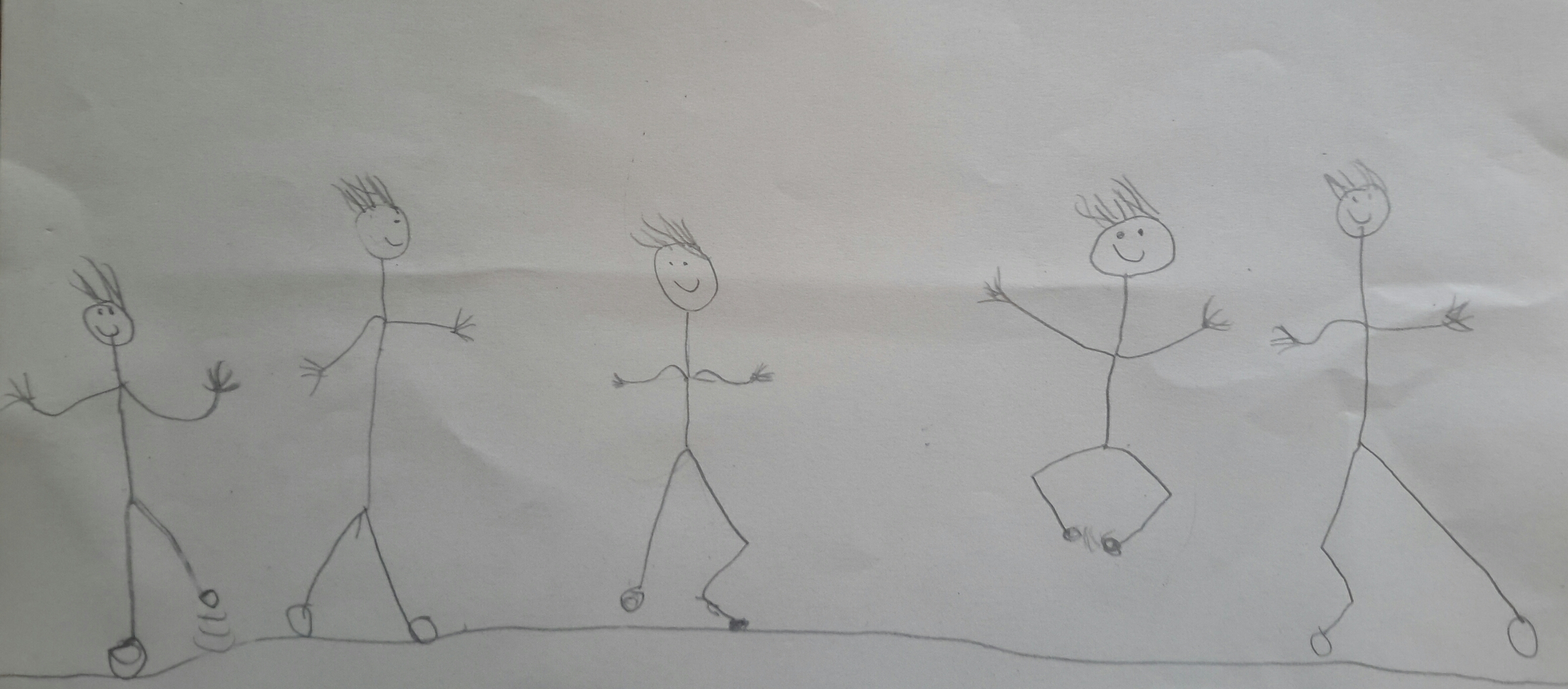 Today we danced again in third grade. First we had a look at several short videos (Bill Bailey, Fred Astaire, Cab Calloway and such), then did some basic tap dance (toe, heel, brush) and freestyle at the end. Here is what my 8 and 9 years old girls and boys were drawing afterwards: