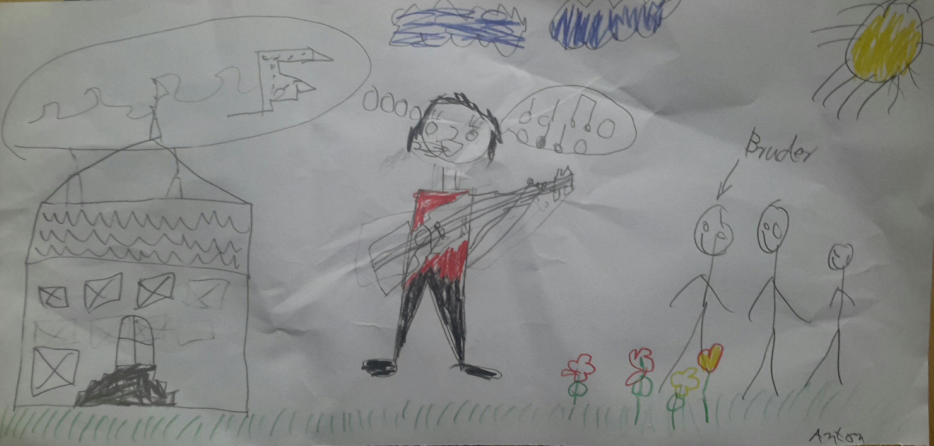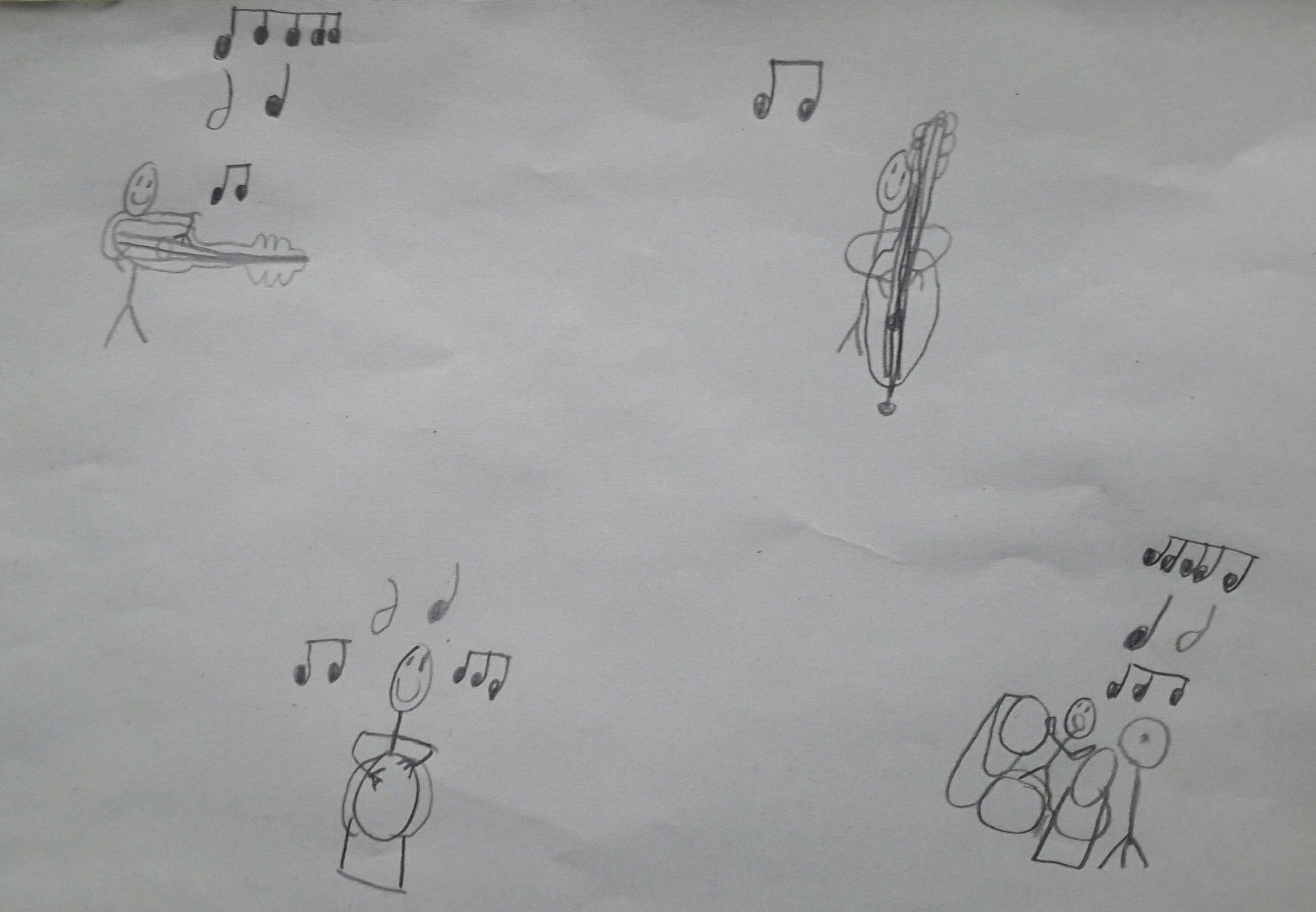 Small (and big) children draw guitars and other musical impressions