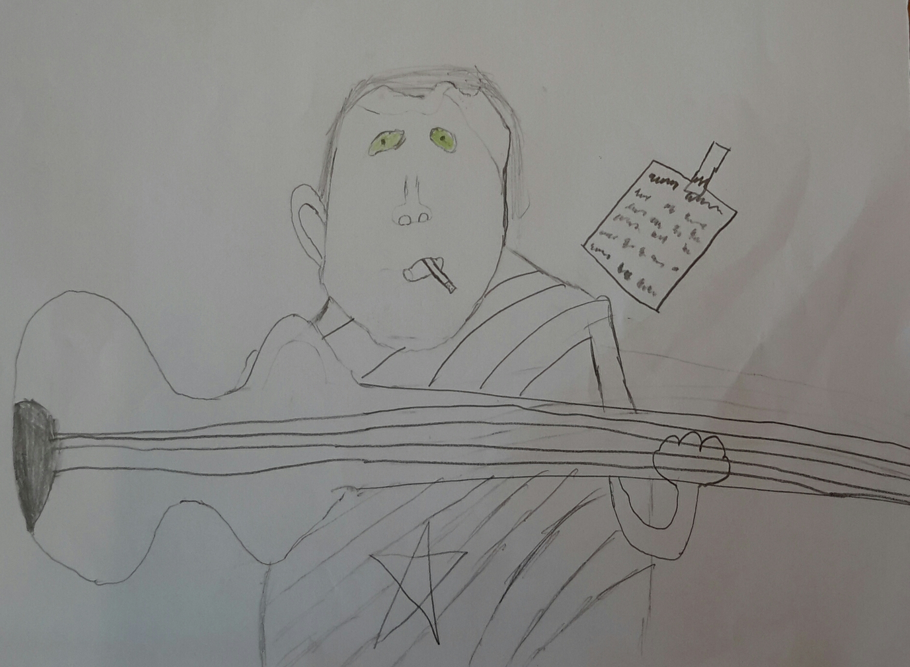 Had my Altamira with f-holes at school yesterday, Aidina made this drawing from memory.