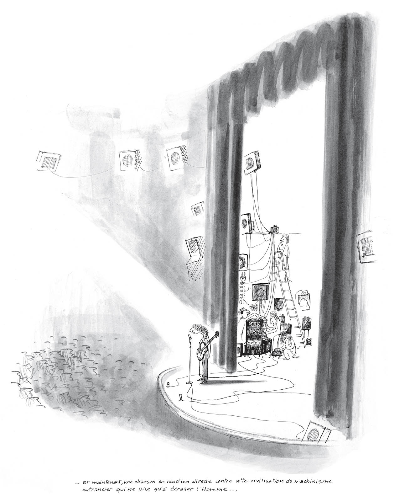 "And now, a song in direct reaction against this civilization of outrageous machinery which only aims to crush man ..."