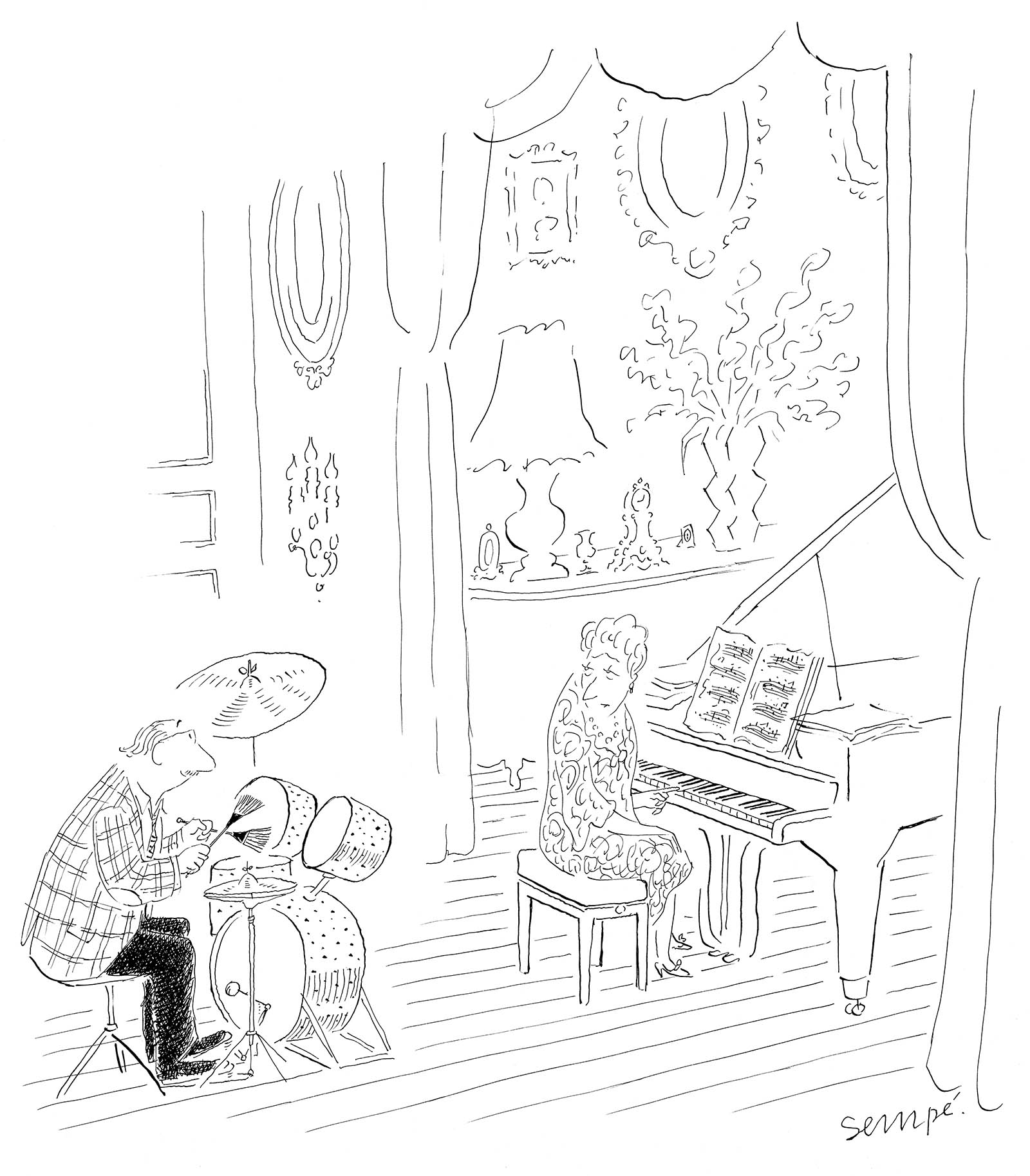 Just heard on the news that Jean-Jacques Sempé has died with almost 90 years, one of the leading cartoonists worldwide, with dozens of covers for the New Yorker alone, his ""Little Nick" translated in 30 languages, and with legendary drawings of musicians as for example the following: