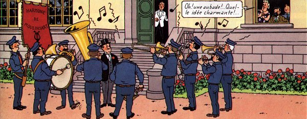 The panels are form "Les Bijoux de la Castafiore" which is possibly my favorite one. That album also has manouche playing guitar at the camp: