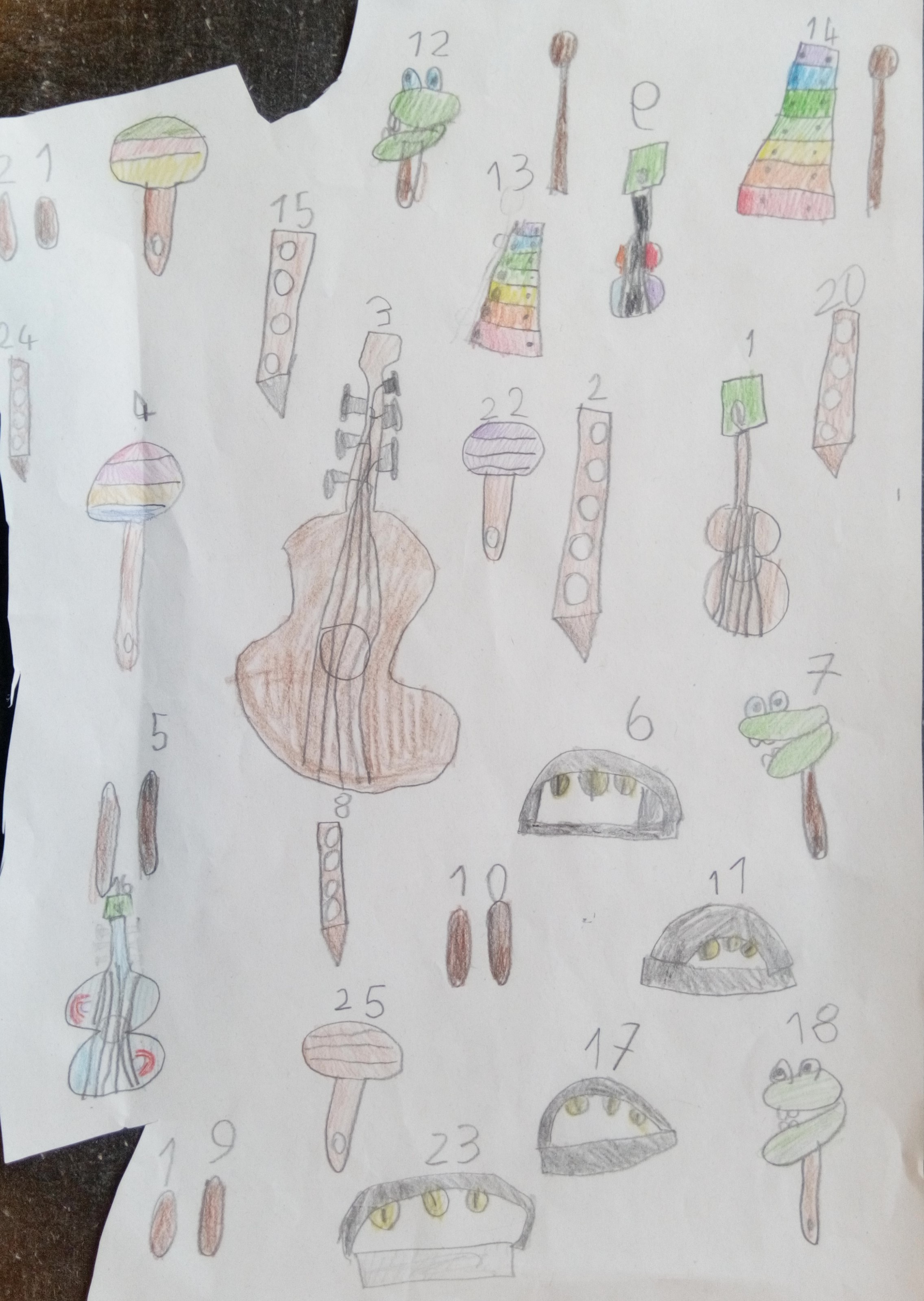 Elina drew all the instruments she knew from our music lessons.