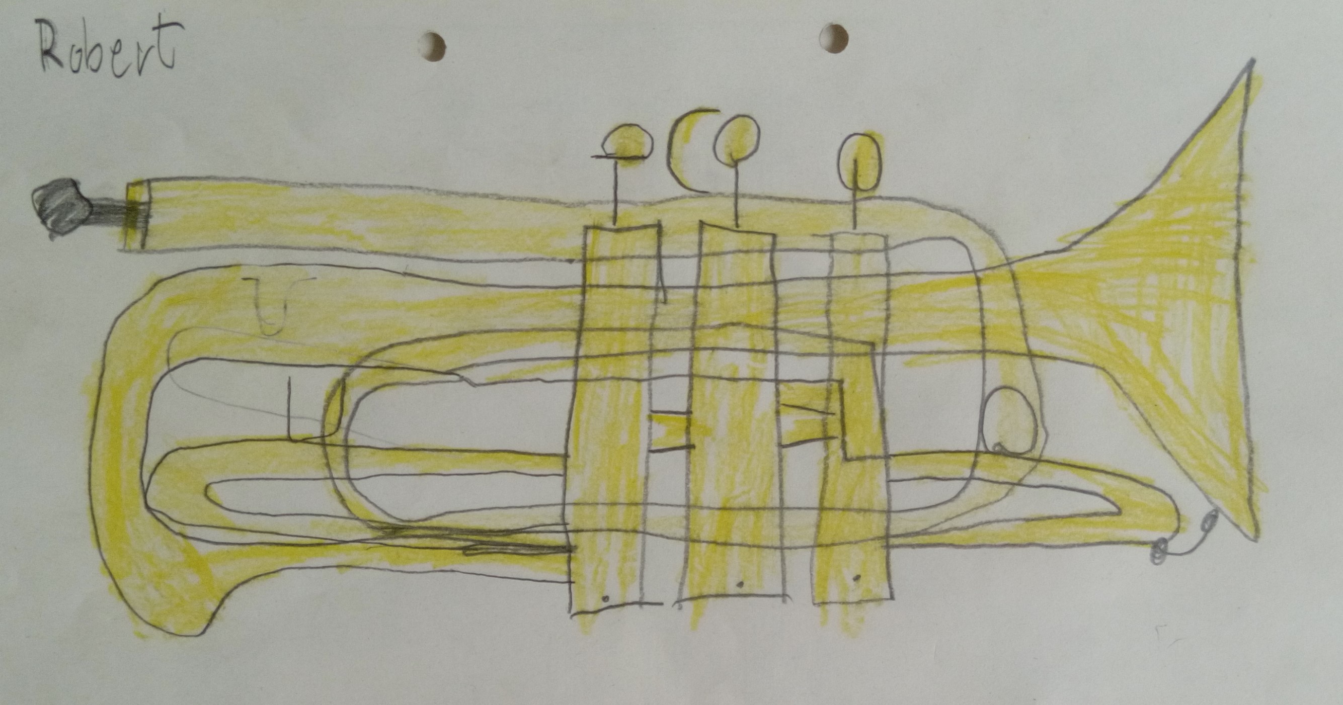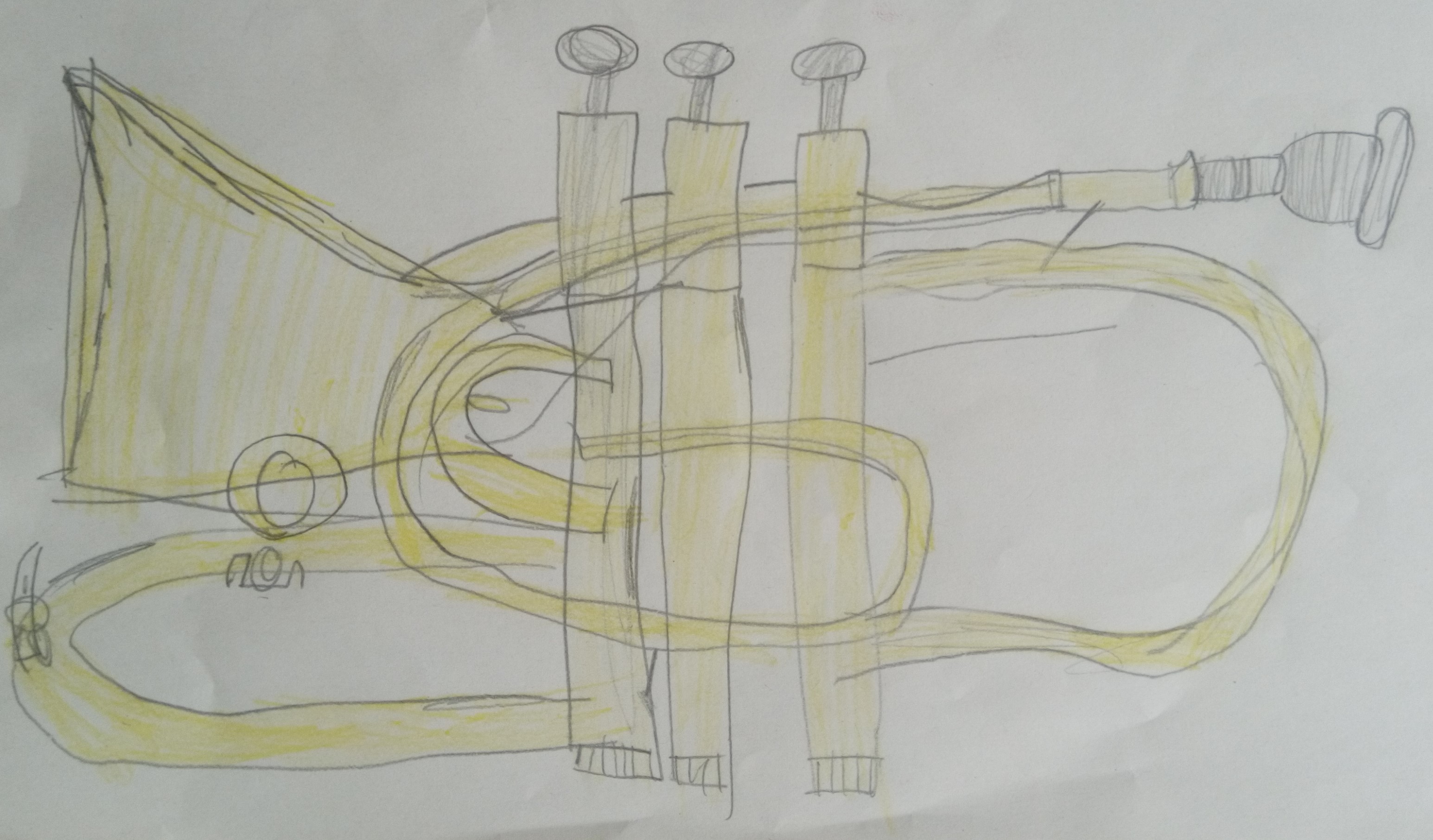 Today I had only 4 pupils in my brass class, so I decided to give 10 minute "private lessons" for everybody. To prevent those not playing with me for the moment from fooling around I gave them the task to draw their cornets, with as many details as possible.