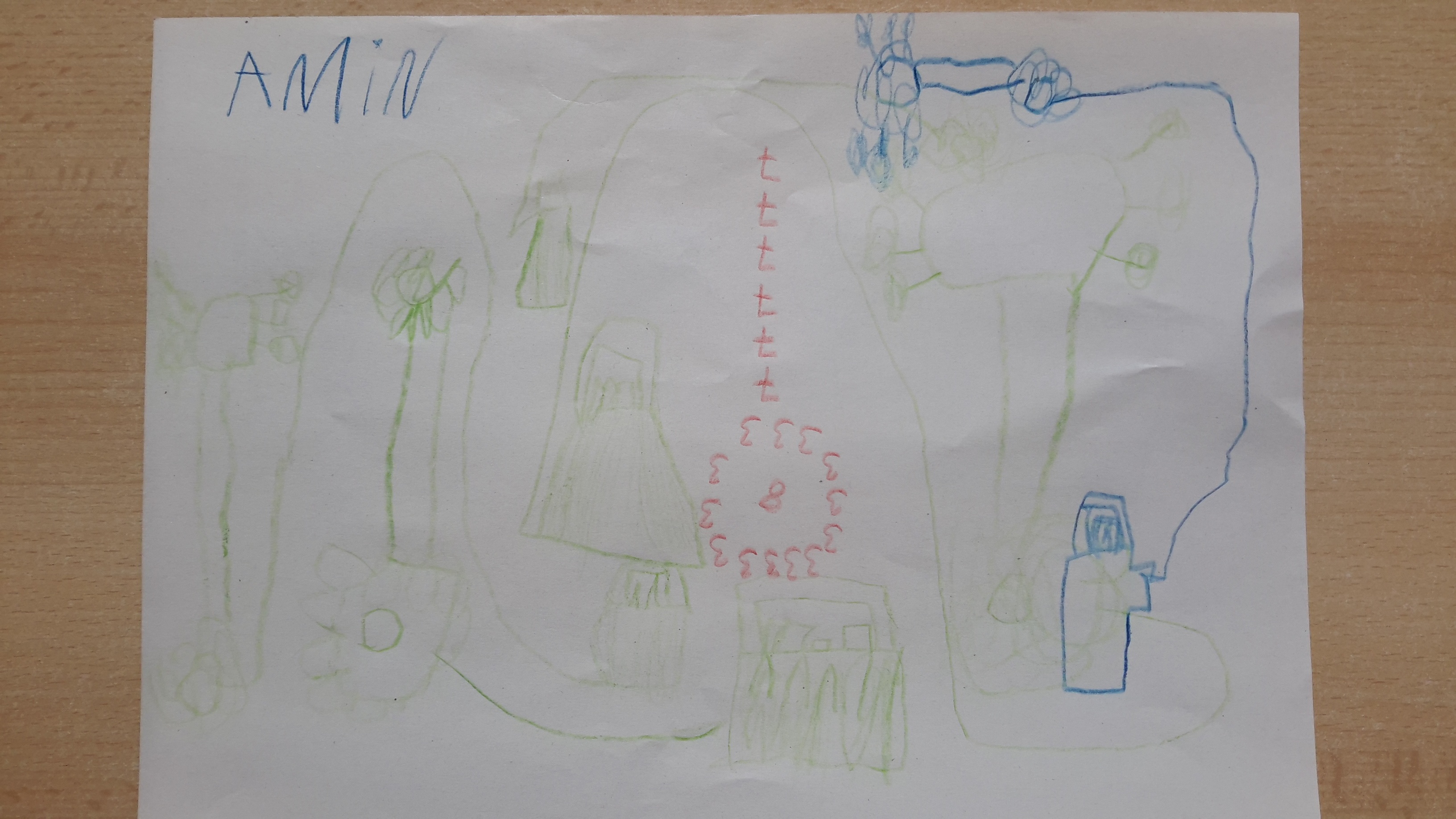During her first months in our school Gharam didn't draw at all; she just sat there, staring at the blank paper, not accepting any help. Since several weeks, things have changed.