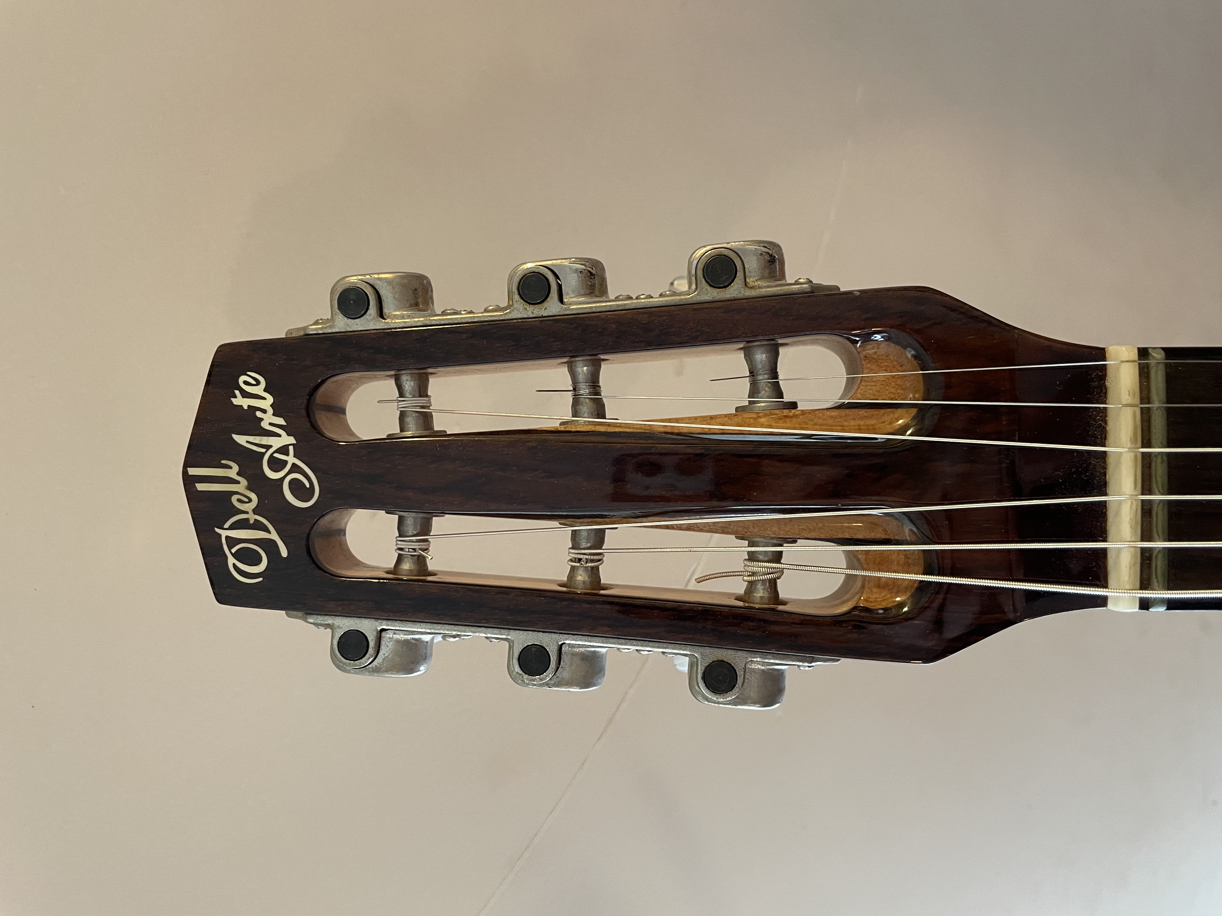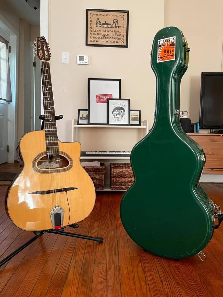 Up for sale is my Favino style Dell Arte DG-H1. I bought this new in 2008, played it on many gigs, and kept it in its case when I wasn’t playing it. It’s in amazing shape, and the finish has developed a warm honey color over the years. This one of the early ones made overseas for Dell Arte; serial number is 0000024.
