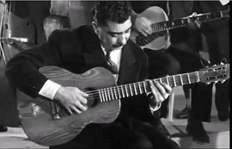 @rudolfochrist On most of the pictures and videos showing Nin-Nin as a soloist that I have seen, he plays a guitar like the one shown on this picture, or an archtop without cutaway: