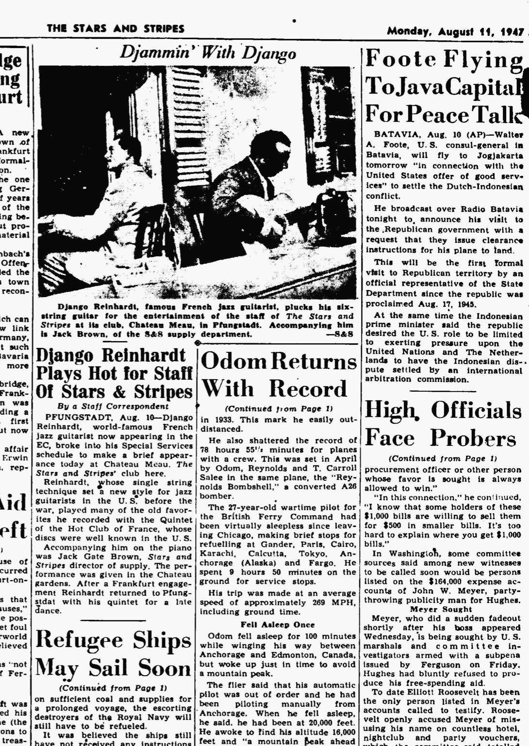 I’ve checked and it appears in a 1947 issue of “The Stars & Stripes” and Django is playing to the Stars &Stripes staff at Chateau Meaux so I think it is the photo Jackson was referring to.