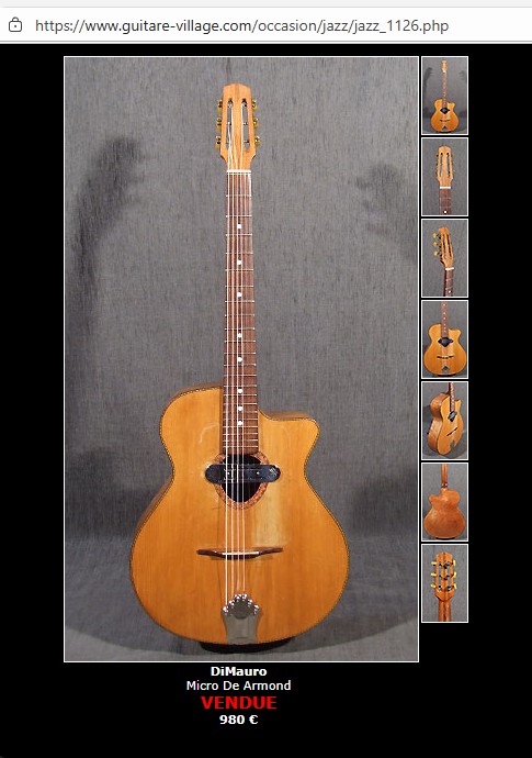 I was basing my valuation on the French market. I appreciate in the US there may be a premium on guitars already in the country as I know many are wary of the costs and hassle of importing and I read recently on a Reverb post that all guitars whatever age and value are now subject to import tariffs, but as the auction in the original post is in France my guess it will sell for a French price. Average prices across Le Bon Coin and Guitare Village in Domont see Boogie Woogies between 800 and 1.200 Euros, and St Louis Blues from 1,500 to 2,000. Here are two Joseph Di Mauro ;Heart Hole' models sold recently by Guitare Village although to be fair the cheaper one may have been altered where the pickup is fitted. Supply and demand rules I guess.