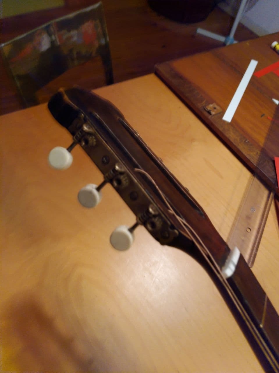 6.Today I made new buttons for the tuners and they came out pretty nice too and I'm working on making a new nut.