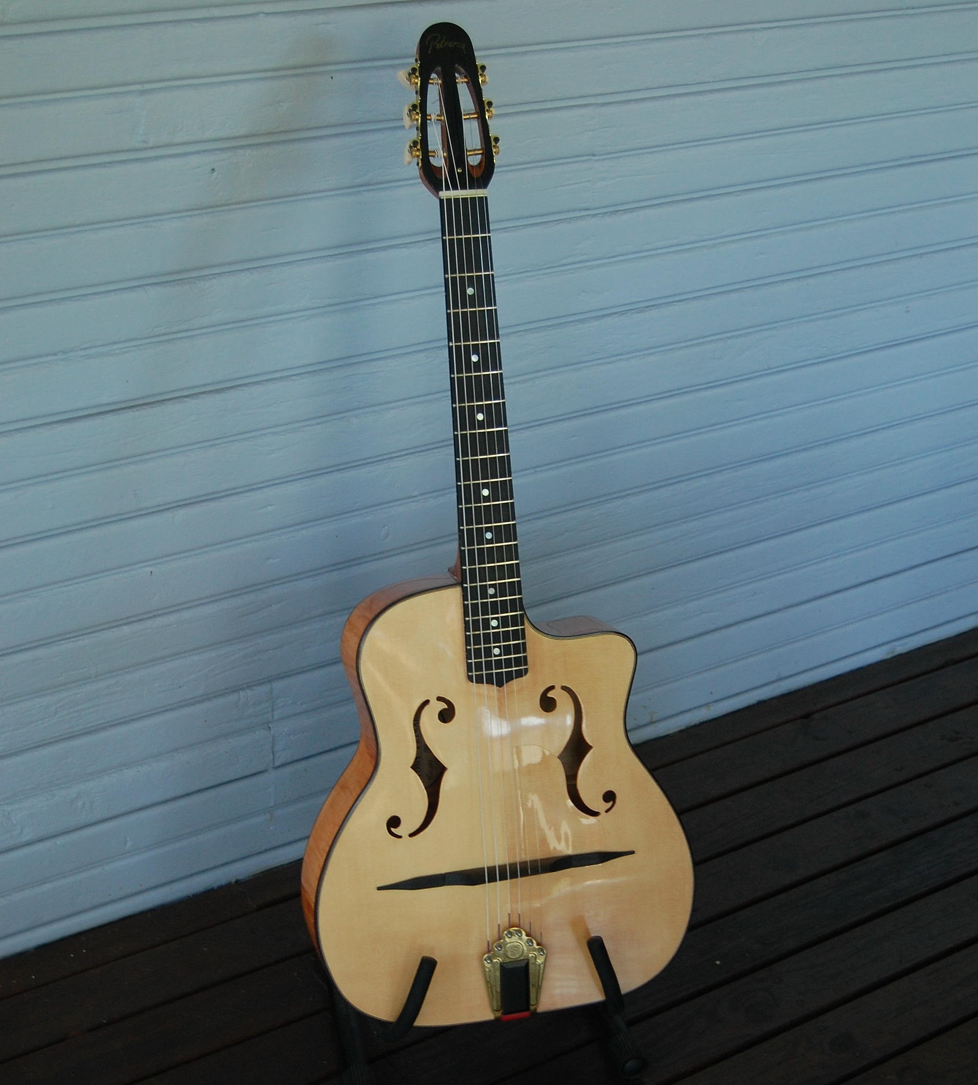 And firmly back in Europe, here are a couple of photos of a 'Chorus' style guitar made for me by Tony Petrarca in 2014 and I still have that as my #1.
