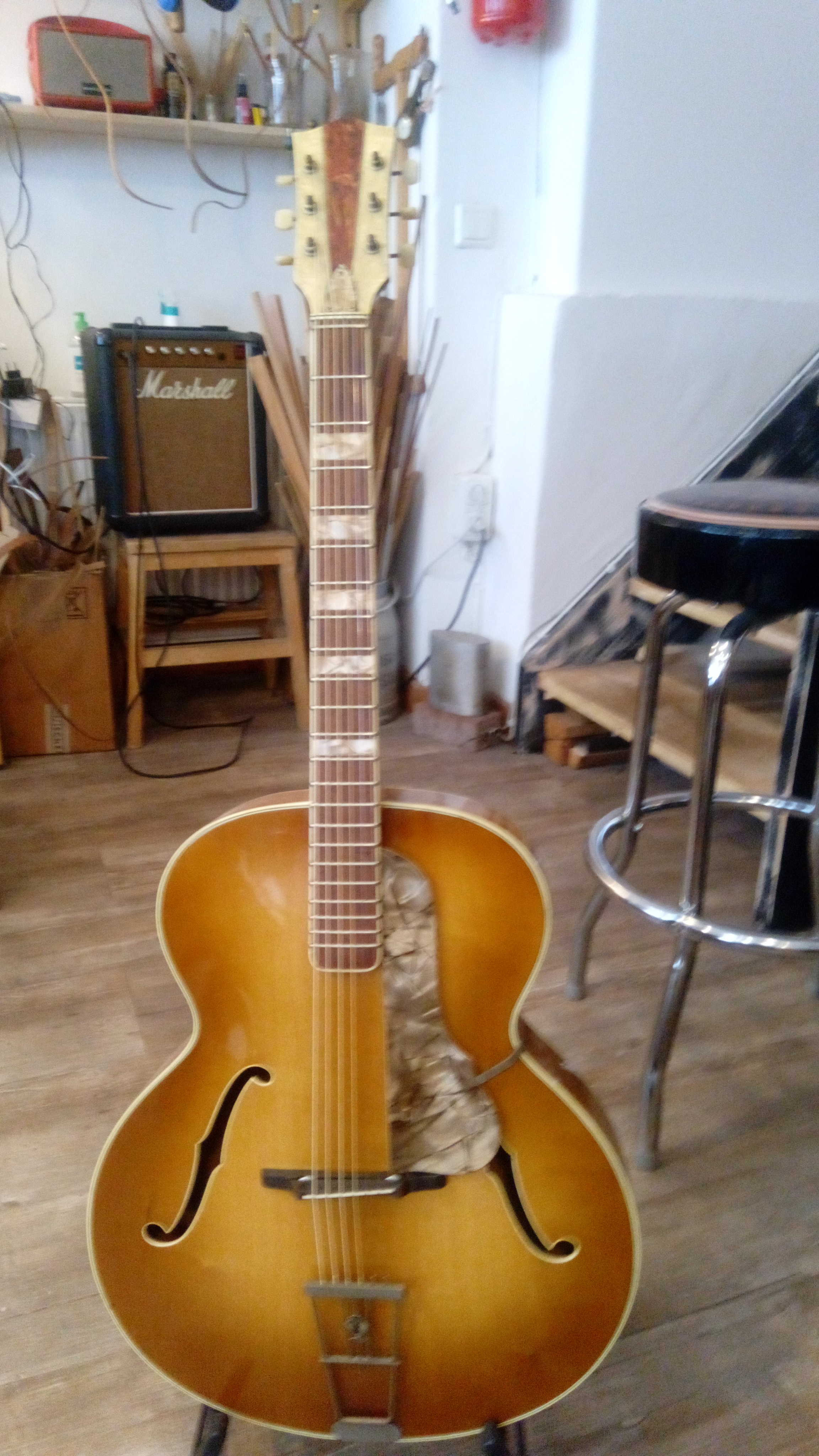 An old Höfner archtop with a 17" body