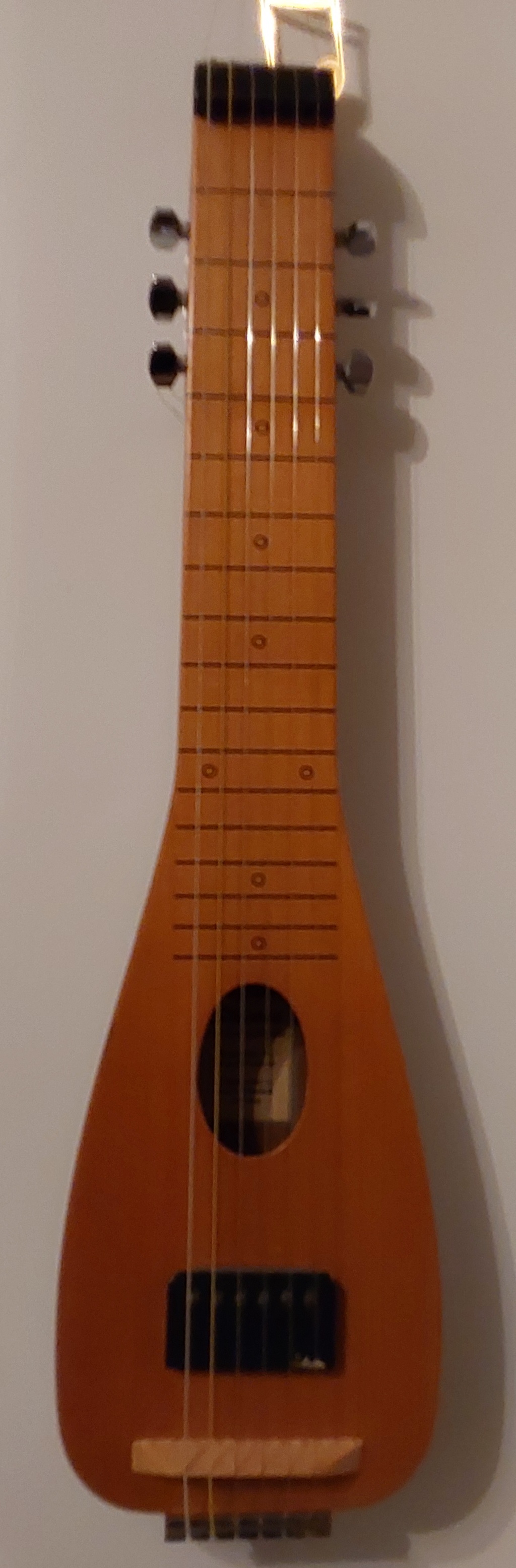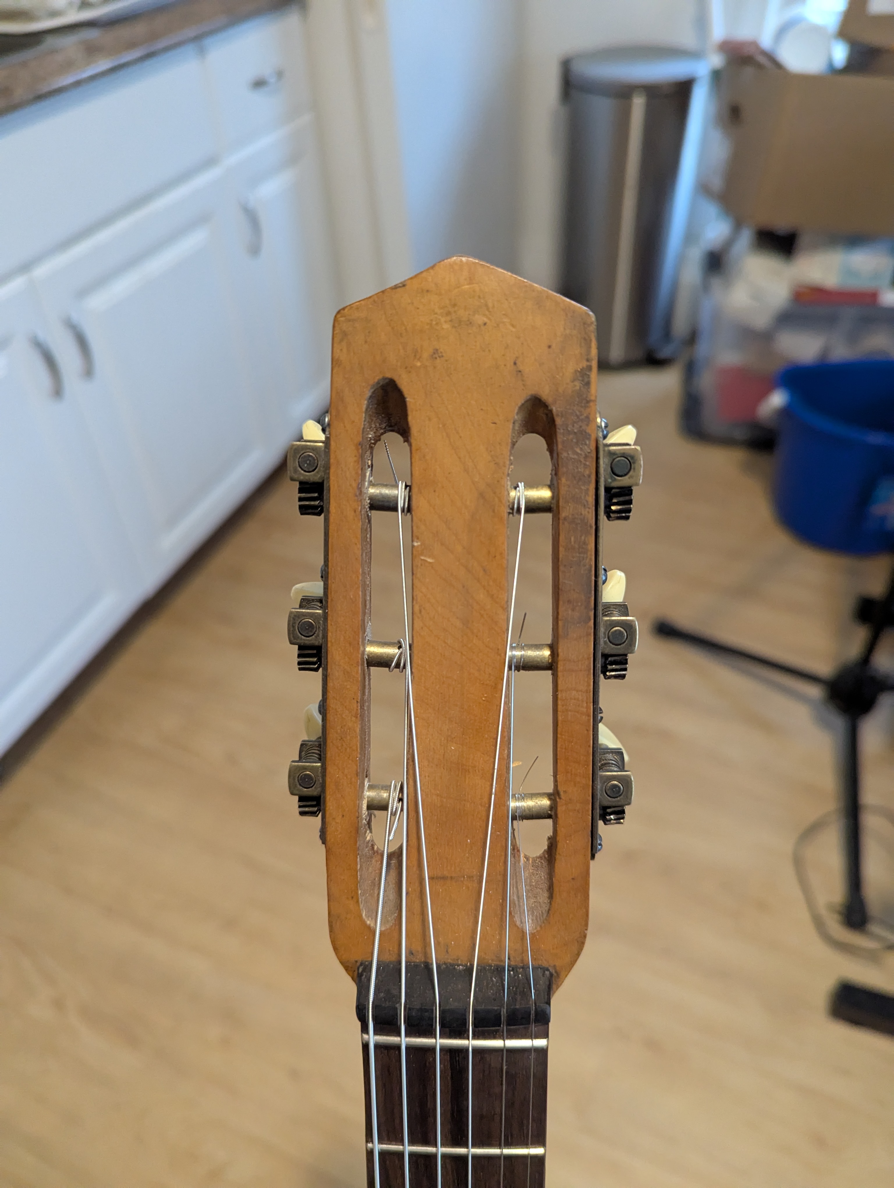 After finally having sold three guitars, a baritone ukulele, a steel drum and a cornet, and having lent two guitars and two ukuleles to friends and their children this year to create space, I just came home with a "new" mystery guitar: