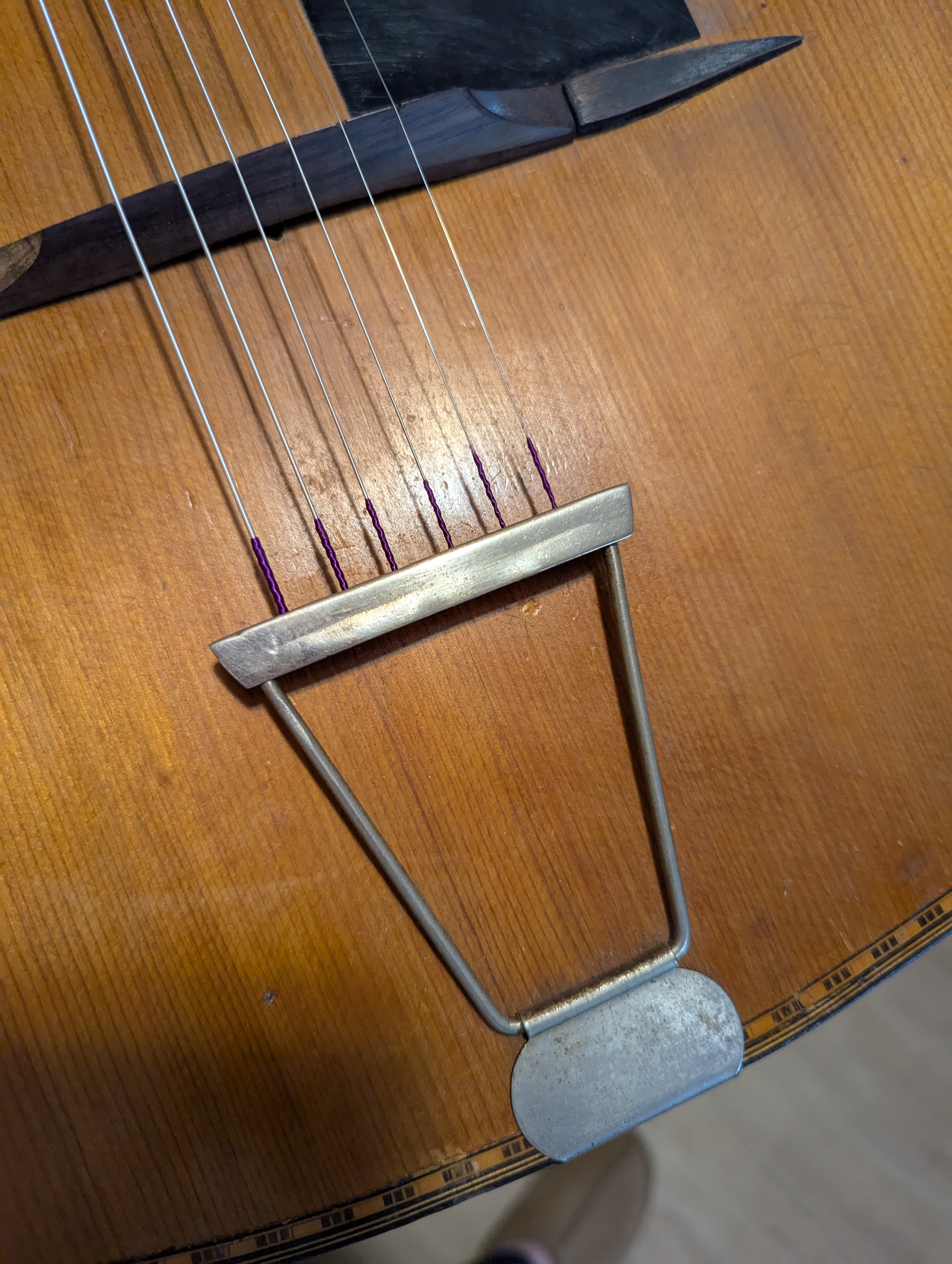 To alleviate some of your despair, I too have bought another mystery guitar! It seems to have become a tradition of mine to buy a Christmas gypsy guitar! This time it was collection only from Norfolk, but I happened to be close by in Lincolnshire, and agreed with the seller to meet halfway in a cafe. I'm currently sorting out a better tailpiece, bridge/moustachios and am excited to get new strings on (it had very old dead 10s on). Pictures to follow.