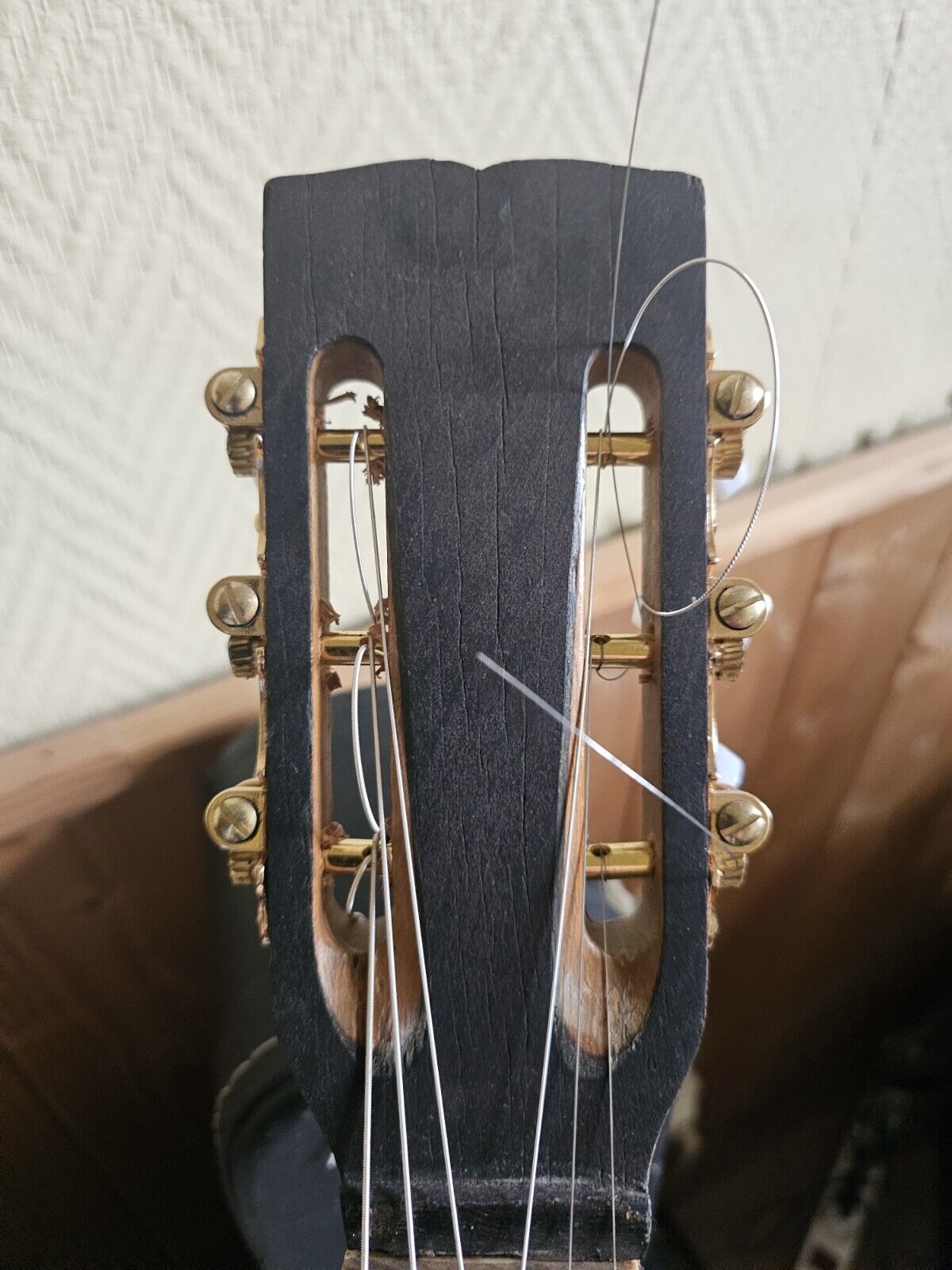 When I brought little cat eye home, I played a few notes to show it to my wife. "Oh, nice!", she said. When I told her that I planned to convert it to a lap steel guitar, she looked at me like "Why?". So I finally put Elixier 0.11 on and loved what it sounded like. Recorded the intro and the first chords of "Jovano, Jovanke" with my cheap mobile phone.