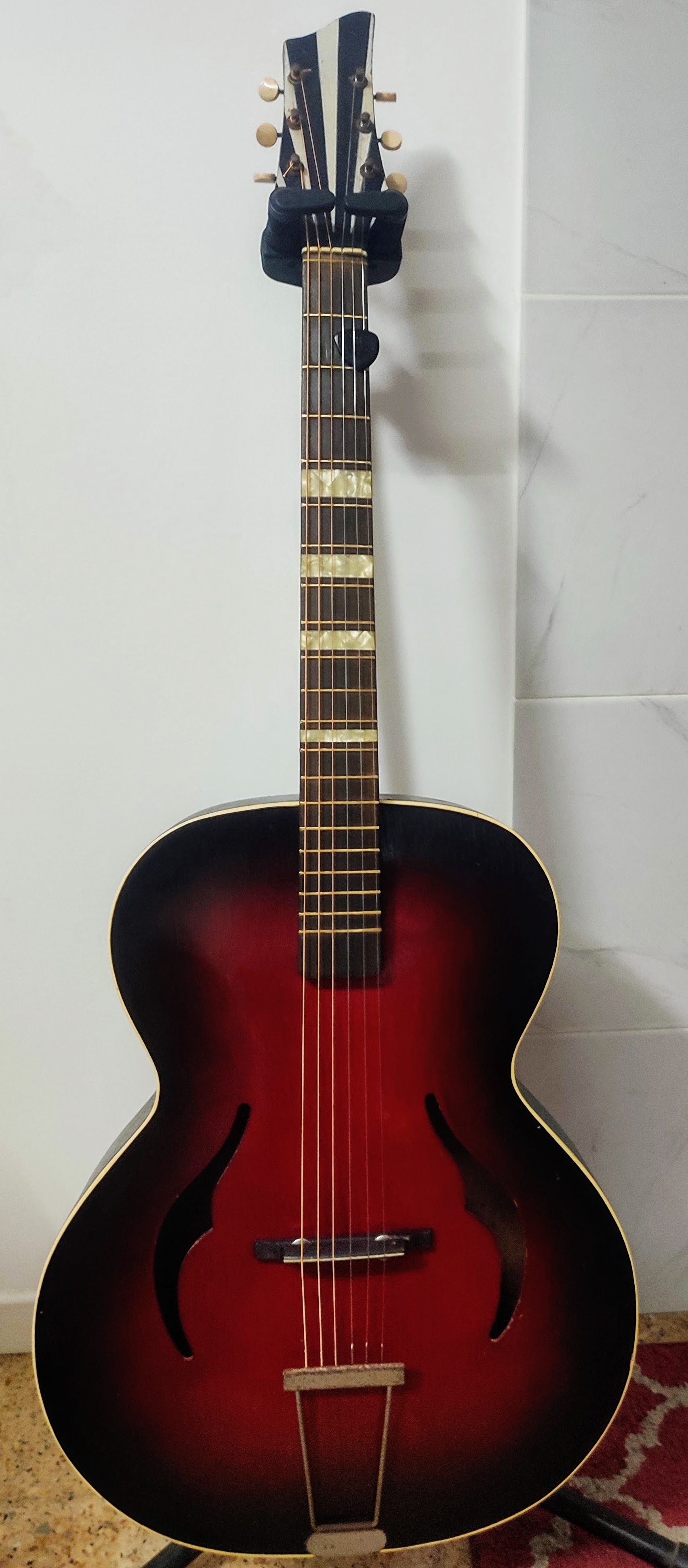 Then I found a Huttl archtop for sale at a reasonable price, a Black Rose sunburst Combo model, and my bid was accepted.