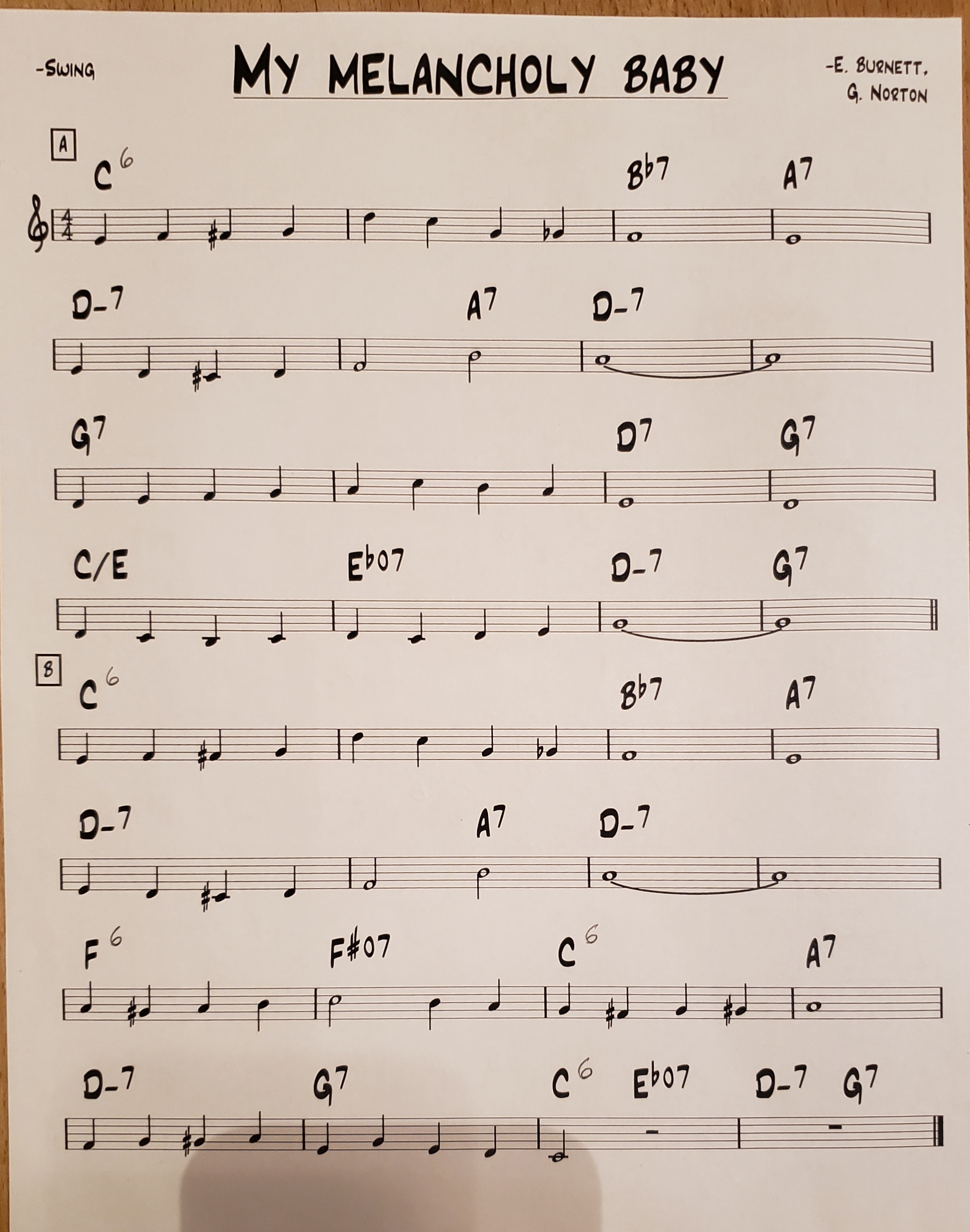 This month's song of the month is so fun to play that I have to remind myself not to call it too often, just to keep it special for my bandmates & myself. It was written in 1912 by Ernie Burnett & George A. Norton. It seems to have become really popular when Gene Austin recorded it in 1927, and that was followed by many other famous vocal versions, notably Bing Crosby. Some of my favorites among them are recordings by Ella Fitzgerald & Mildred Bailey.