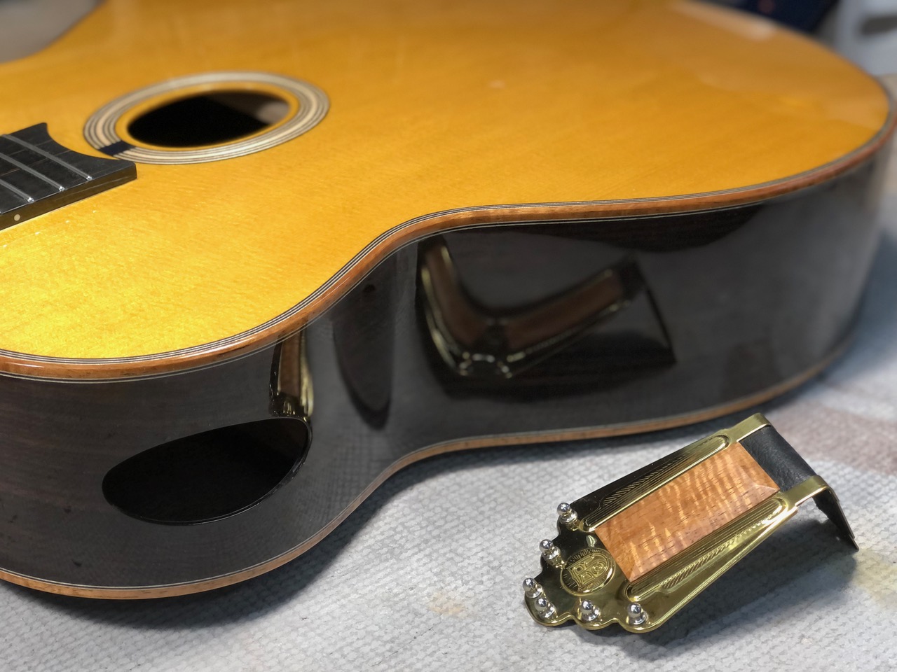 First close looks of this beauty - one of Shelley Park's Encore guitars that she is just finishing up for me this morning! Yes that is the serial number in the subject line. My previous Park guitar was one of her larger Montmarte guitars which became too large after I tore some rotator muscle tissue. That one was #250.