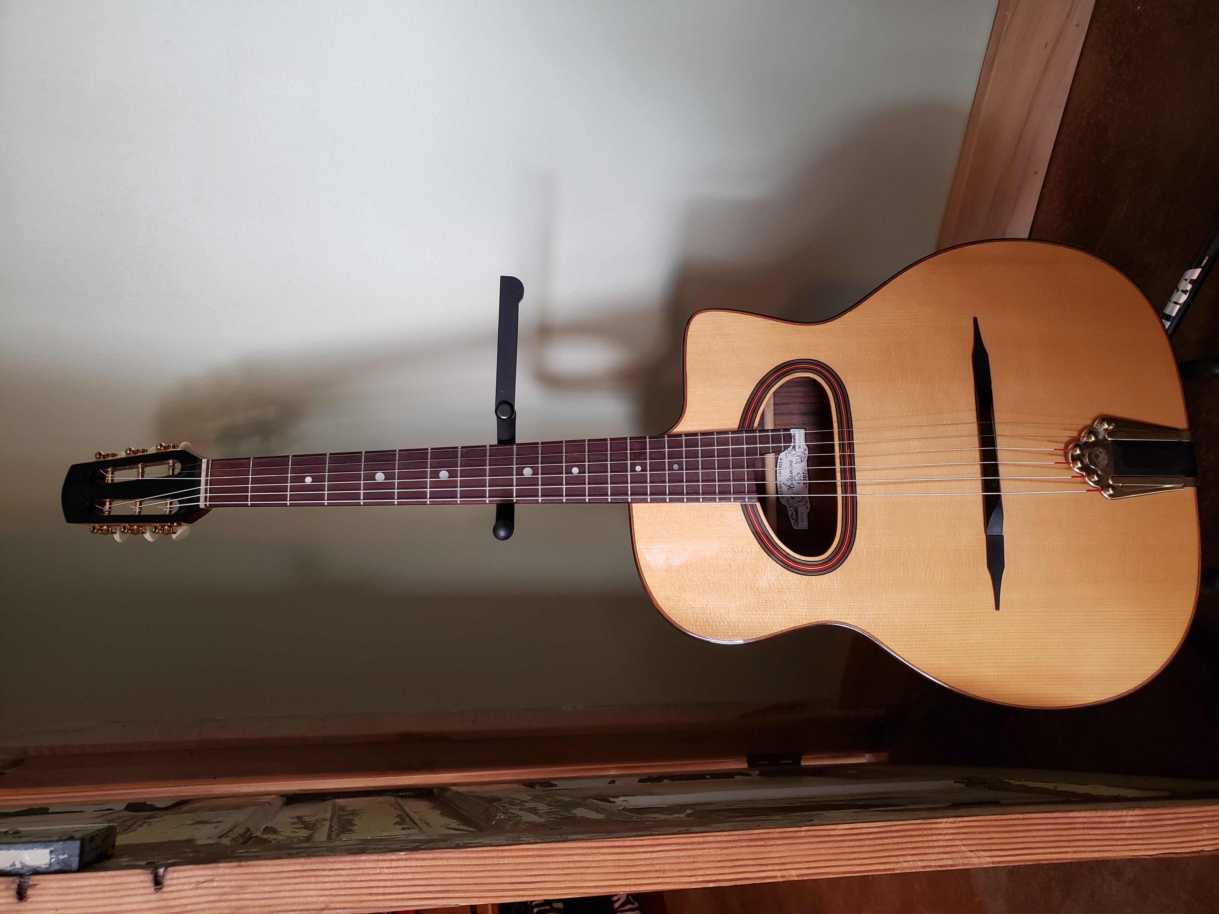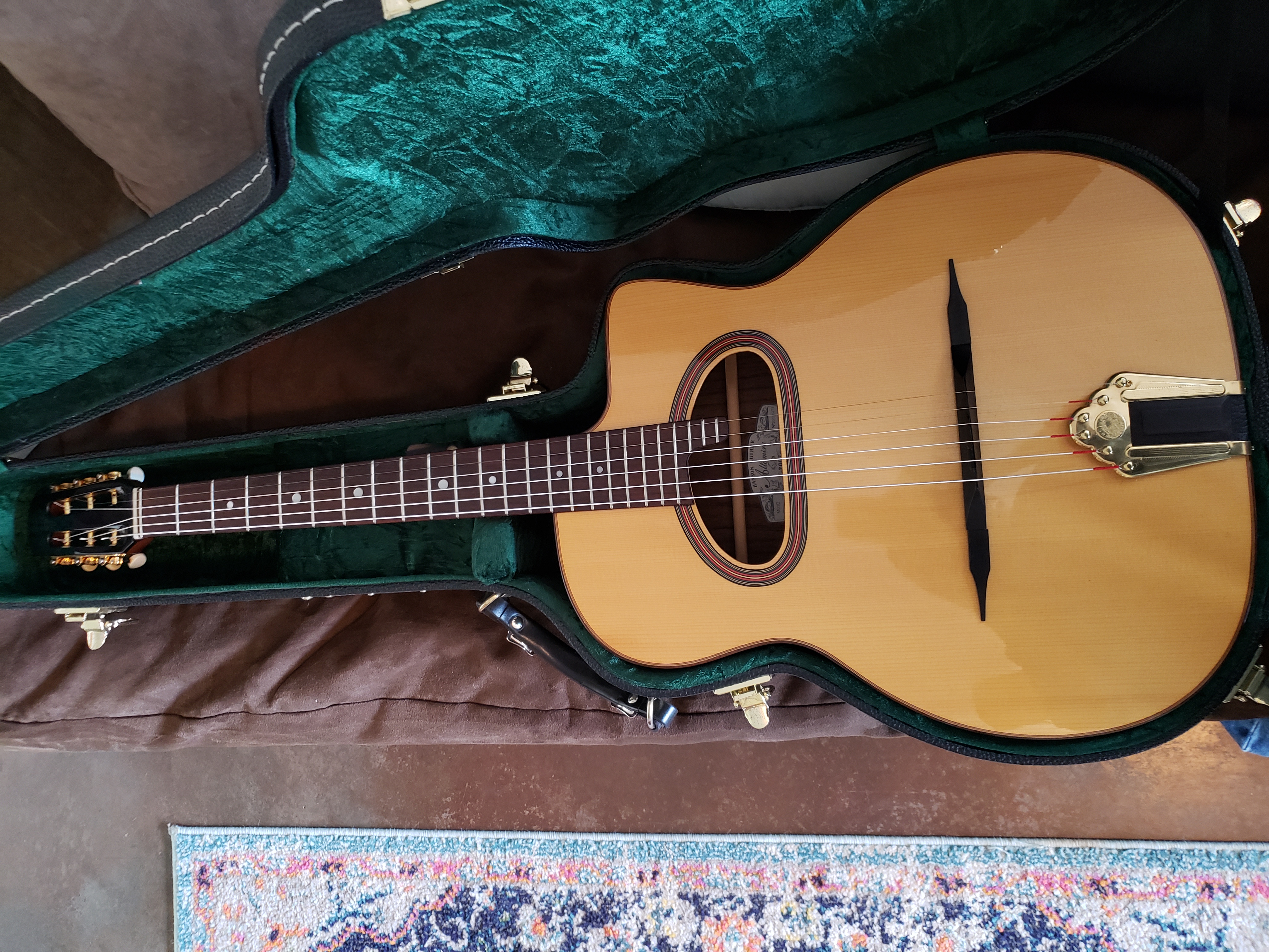 I'm selling my Altamira, those that know me thru the forum know I'm exclusively playing archtops these days. It's super nice, I bought it new from Michael in 2016. I've played a lot of gigs on it & it's been well-maintained. It has upgraded tuners & includes the original hardshell case.